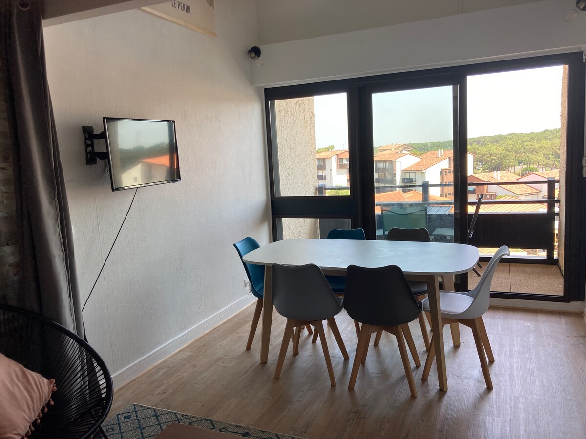 Bienvenido a este apartamento único con vistas a la copa de los árboles de Hossegor, una famosa destino mundial para el surf. Vistas excepcionales del océano, el bosque de las Landas y los Pirineos. Idealmente ubicado con acceso directo a la playa y a muchos comercios y lugares de ocio. El centro de la ciudad está a pocos minutos a pie, lo que facilita la exploración de esta hermosa región. Cada foto fue tomada desde este apartamento. Disfruta al máximo de tus vacaciones en este remanso de paz.