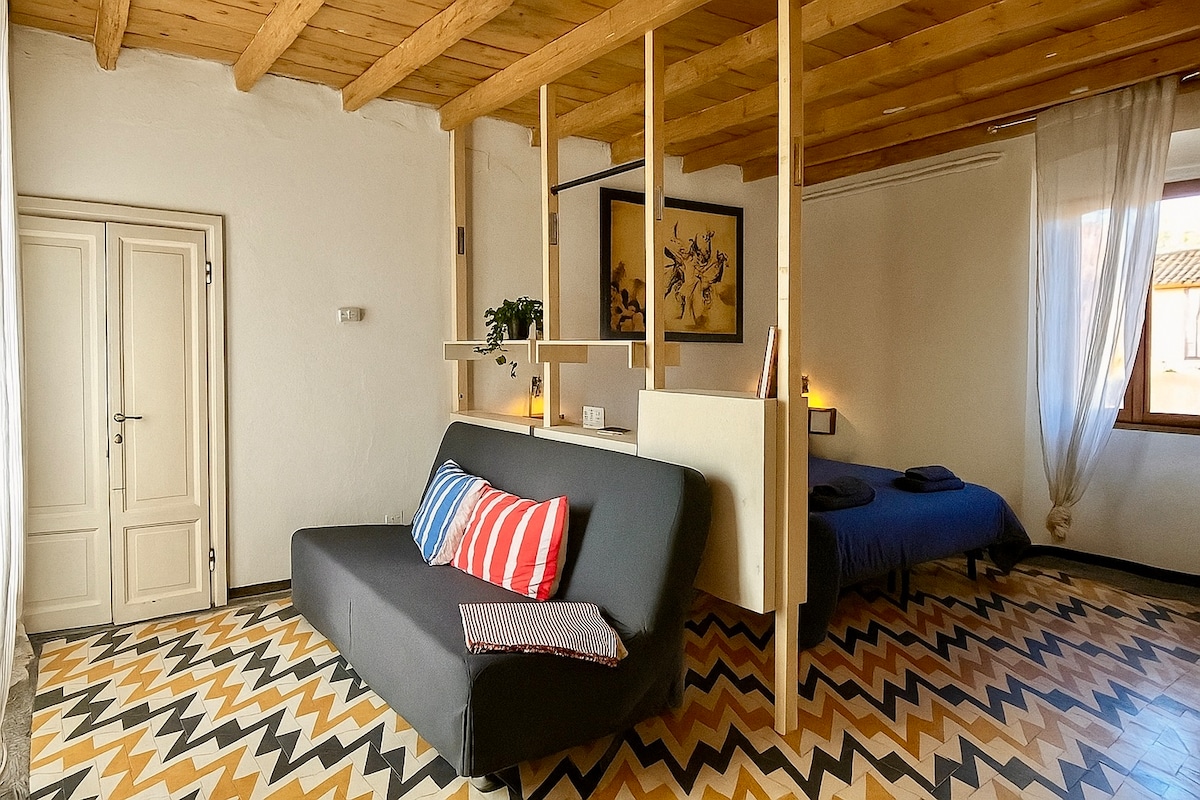 Apartamento tipo estudio situado en el centro histórico de Canonica d'Adda, en la segunda y última planta de una villa renacentista del siglo XVII, a la que se accede a través de una escalera compartida. Apartamento para 4 personas. Está estratégicamente situado para visitar Milán, Bérgamo y los lagos. La casa está a pocos pasos del río y goza de unas vistas impresionantes desde todas las ventanas. Leolandia está a 6 km. Departamento equipado con wifi. Servicio de traslado aeropuerto/casa.