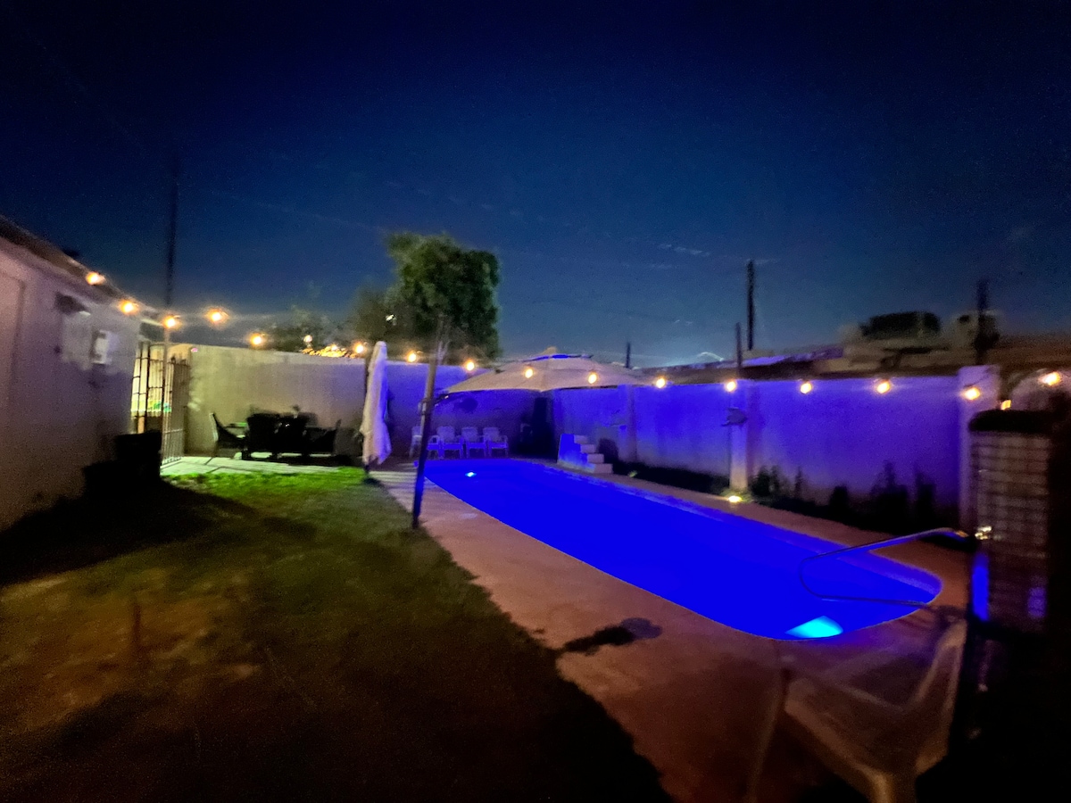 Disfrute de varias noches en una casa recién renovada de Mexicali. Acogedora casa de 1 dormitorio con capacidad para dos, futones agregados, lo que lo convierte en la estadía perfecta para 4 personas. Comunidad privada y protección segura con código de entrada digital a la puerta de entrada para mayor protección para usted y su familia. Ubicación perfecta y fácil acceso a una variedad de restaurantes y tiendas convenientes. Zona exterior con jacuzzi, brasero y asador.