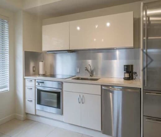 Tómate un descanso de la vida ajetreada y rejuvenece en estas adorables suites de apartamentos de un dormitorio en Miami Beach, en nuestra propiedad FRENTE A LA PLAYA. Mantente fresco toda la semana en nuestras 2 piscinas y jacuzzi. En estos apartamentos amueblados, podrás disfrutar de la puesta de sol desde el balcón y escuchar el ritmo del océano. Todos los apartamentos tienen lavandería en el interior. Los electrodomésticos de acero inoxidable y la cocina y el baño ultramodernos no te decepcionarán.