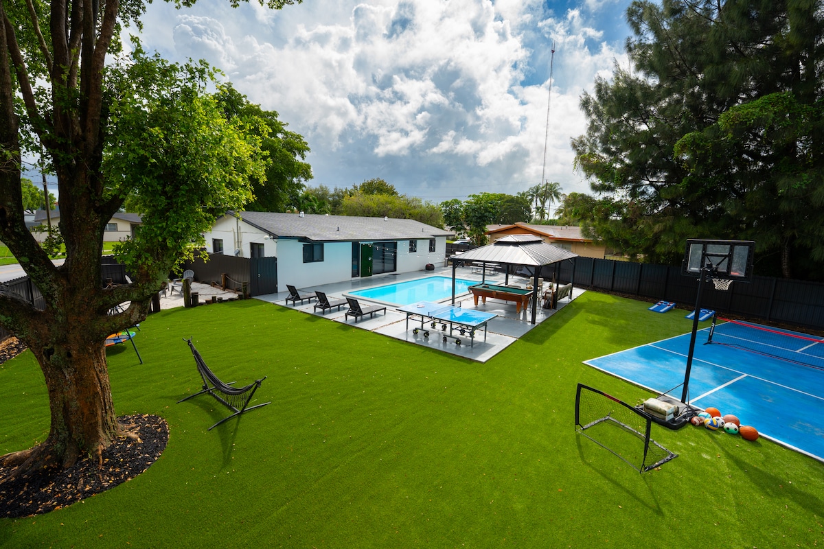 Welcome to our exquisite Fort Lauderdale retreat! This luxurious Airbnb offers an unforgettable vacation experience, combining elegance, comfort, and the ultimate in relaxation. Nestled in the vibrant city of Fort Lauderdale, our property boasts a heated pool, a charming pergola, outdoor fireplace, mini golf, game of cornhole, and so much more. Destinations: Fort Lauderdale Airport 14min Las Olas Blvd 6min Fort Lauderdale Beach 6min Hard Rock Casino 12min Sawgrass Mall 19 min