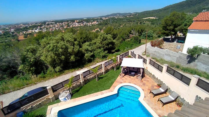 La villa ofrece vistas panorámicas, confort y privacidad total, a sólo 10 min. de Sitges y 40 min. de Barcelona. Es ideal para familias o grupos de amigos que aprecien la tranquilidad y belleza del entorno. Tiene piscina privada con amplia zona de relax, 4 terrazas con distintas orientaciones, aire acondicionado, calefacción, BBQ, y un Chill-Out estilo ibicenco. Todo en ella está pensado para relajarse, disfrutar y desconectar.