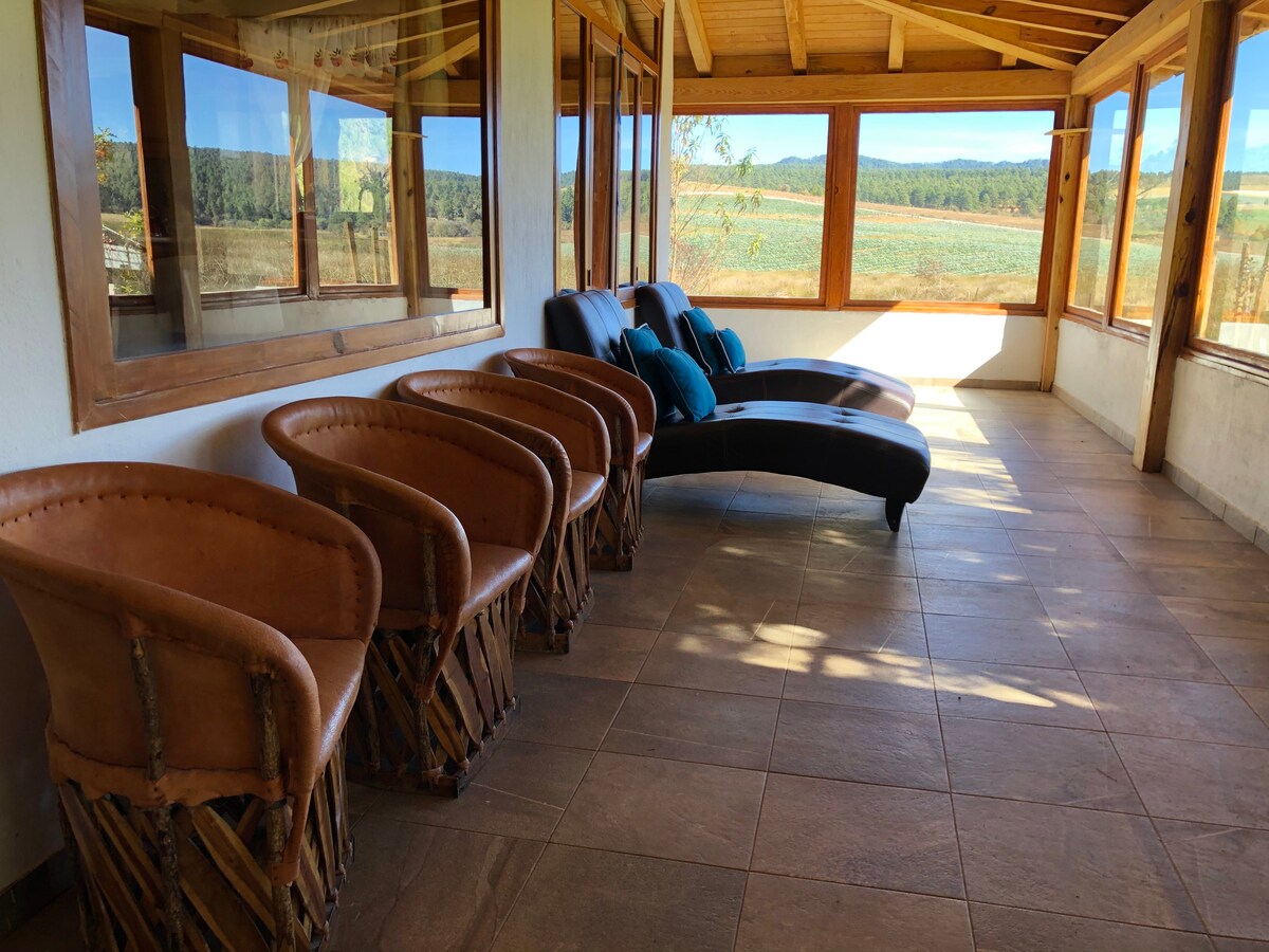 Antigua y acogedora restaurada . Ideal para un viaje de calma y tranquilidad. La propiedad es una reserva de 30 hectáreas de hermosos senderos, árboles y los mejores paisajes para recorrer. Nuestro proyecto es ecológico y podrás aprender de las ecotecnias usadas locamente. En la propiedad tenemos 4 perros, un santuario de burros, gallinas, cerdos, borregos y aveces gatitos. No aceptamos mascotas por la seguridad de mascotas y de la granja. Incluimos leña, carbón, tortillas, quesito, fruta,café