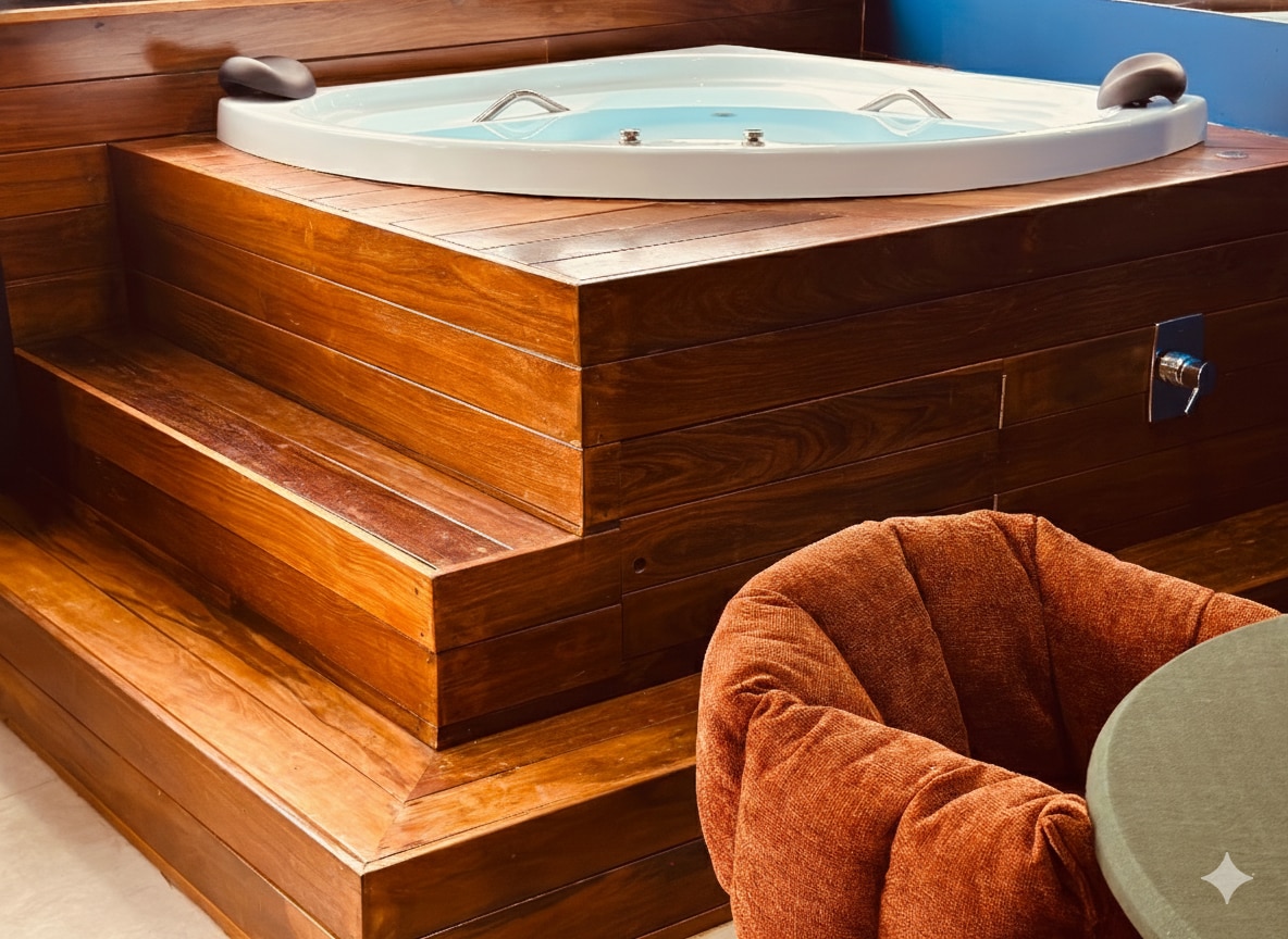 ¡Vive el lujo en esta escapada moderna (lanzada en abril/25)! Relájate en el hidromasaje con cromoterapia y controla la iluminación con el estudio Alexa Echo de 330W RMS. El espacio tiene un aire acondicionado de 18 000 BTU que sonríe mucho, minibar, lavadora y secadora y ropa de cama de primera calidad. Destaca por el entorno de maquillaje con silla profesional, secadora y espejo GG con LED. Con una sofisticada decoración bohemio, este espacio se diseñó para proporcionar comodidad y elegancia. ¡Reserva ahora!