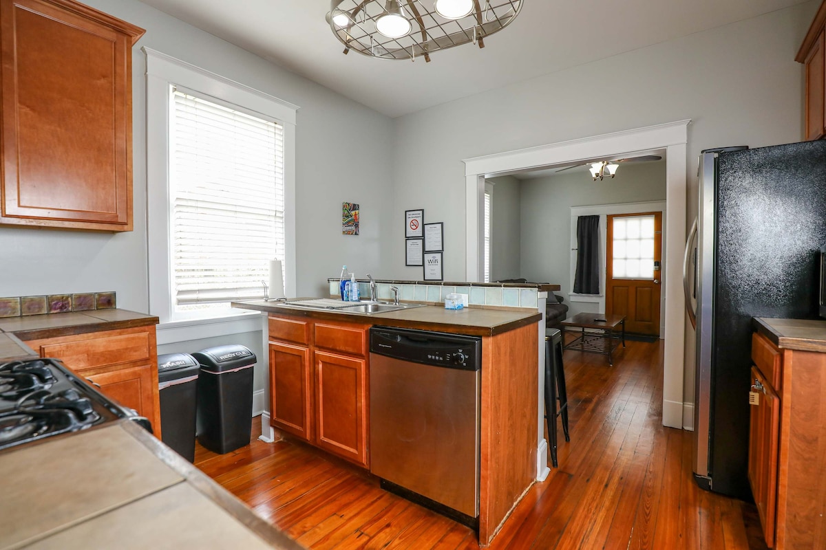 Bienvenido a Miss Ruby's Mid-City, en un barrio residencial seguro y tranquilo a pocos pasos de una línea de tranvía, en el corazón de Nueva Orleans. Está a poca distancia en tranvía del Barrio Francés o del zoológico de Audubon y a poca distancia a pie de docenas de restaurantes, cafeterías, tiendas de comestibles y farmacias, y lugares nocturnos. Déjanos hospedarte en nuestra casa recientemente renovada de más de 100 años de antigüedad, con carpintería original, techos de 14 pies, 2 salones, puertas de bolsillo y un espacio abierto para vivir. ¡Perfecto para descansar o jugar!