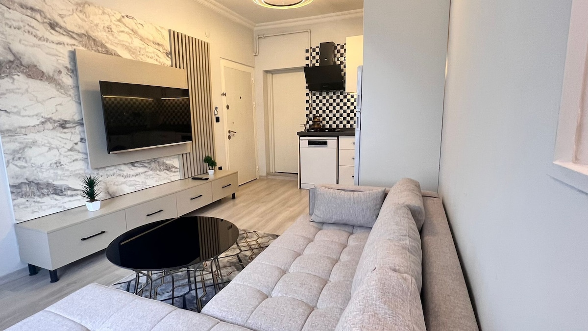 ¡Te damos la bienvenida a tu elegante hogar lejos del hogar en el vibrante distrito de Şişli de Estambul! Este apartamento 1+1 cuidadosamente diseñado (40 m²) ofrece comodidad, comodidad y una ubicación ideal tanto si estás aquí por negocios como por placer. Perfecto para parejas, familias o grupos pequeños, el apartamento tiene capacidad para 3-4 huéspedes. Todo lo que necesitas para una estancia cómoda está aquí, ya sea que estés de visita por negocios, visitas turísticas o simplemente para experimentar el encanto de Estambul como un habitante más.