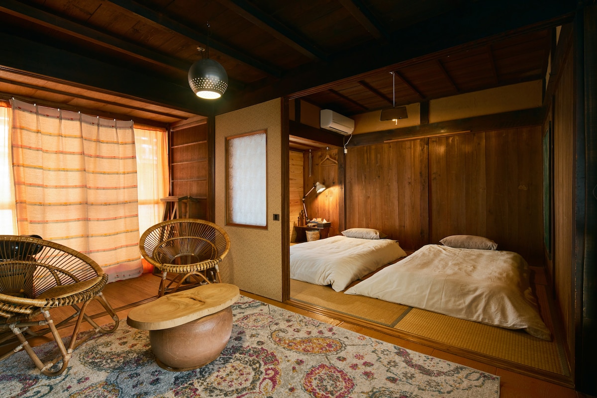 以前私達が住んでいた家をリフォームしました。  当民泊は、1日1団体様貸し切りです。  寝室がある2階はお客さん専用ですから、気兼ねなく過ごしていただけます。7.5畳と6畳の2部屋を1区画とし、それが2階に2区画あります  マンガ本や将棋、囲碁なども取り揃えています。   寝室にはシングルベッド4つ、セミダブル2つ、布団を3組用意しています。事前にご連絡いただければ、お好みの形にご用意します。  1階の談話室や食堂も旅行相談等で使う以外は、お客さん専用です。お風呂もお客さん専用ですが、トイレはスタッフも使います。  ホスト在宅の民泊ですので、小さいお子様連れの方や旅に不慣れな方も安心して滞在していただけます。また、いろいろな旅の相談にも乗ることができます。何かあれば、気軽に声をかけてください。それ以外の場合には、プライバシーを尊重します。  駅や神宮、近隣施設へは送迎します。また、大きな荷物の伊勢到着時の受け取りも可能で、身軽な旅を楽しんでいただけます。