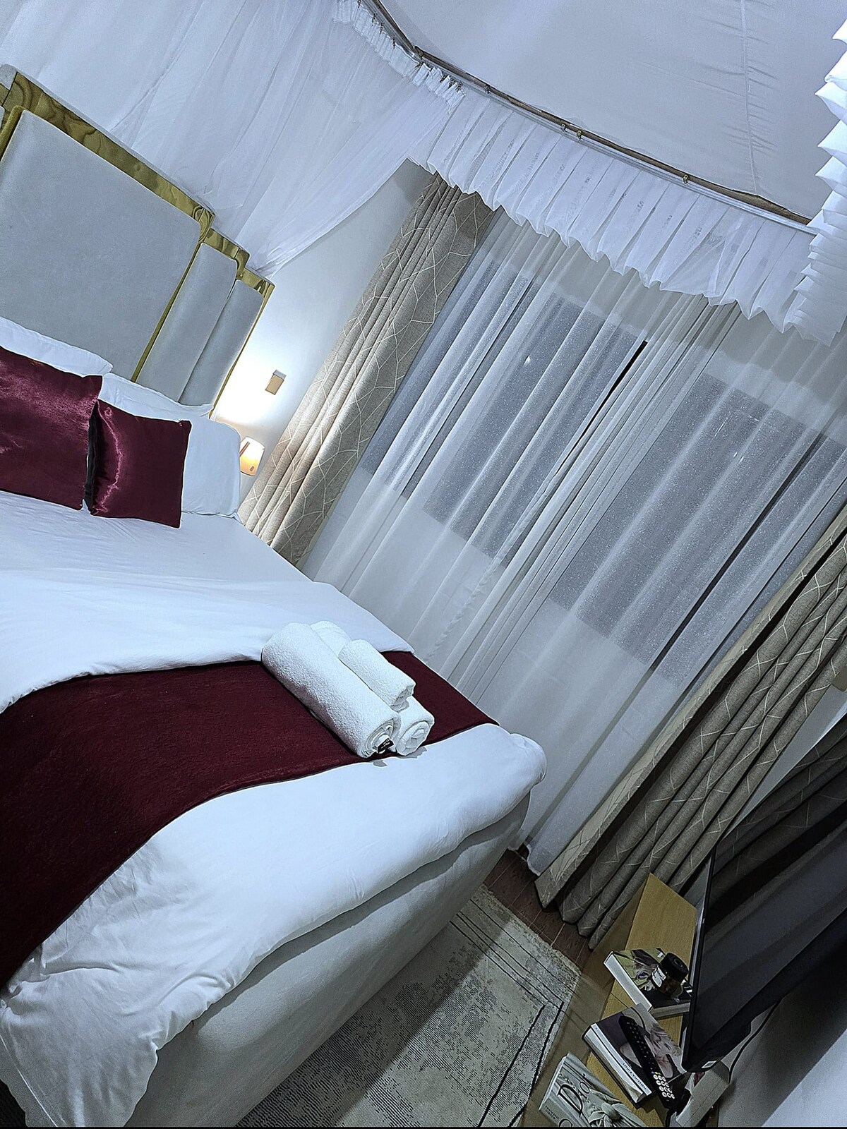 Villa de 2 dormitorios en el área de Milimani de alta gama ahora instalada con aire acondicionado, con W.Machine, mosquiteras de techo en todas las habitaciones, también FUMIGACIÓN rutinaria en diciembre de 2024 y febrero de 2025. Tiene un hermoso jardín. Está en el centro: a 11 minutos del AEROPUERTO internacional de Kisumu. Cerrado y cuidado las 24 horas, los 7 días de la semana. A poca distancia de la playa/lago, a unos 2 minutos en coche del CBD, de los gimnasios, la piscina, la autopista de Nairobi, los principales centros comerciales, el parque nacional, el museo, el transporte disponible las 24 horas, los 7 días de la semana. Las dos habitaciones accesibles en suite están arriba.