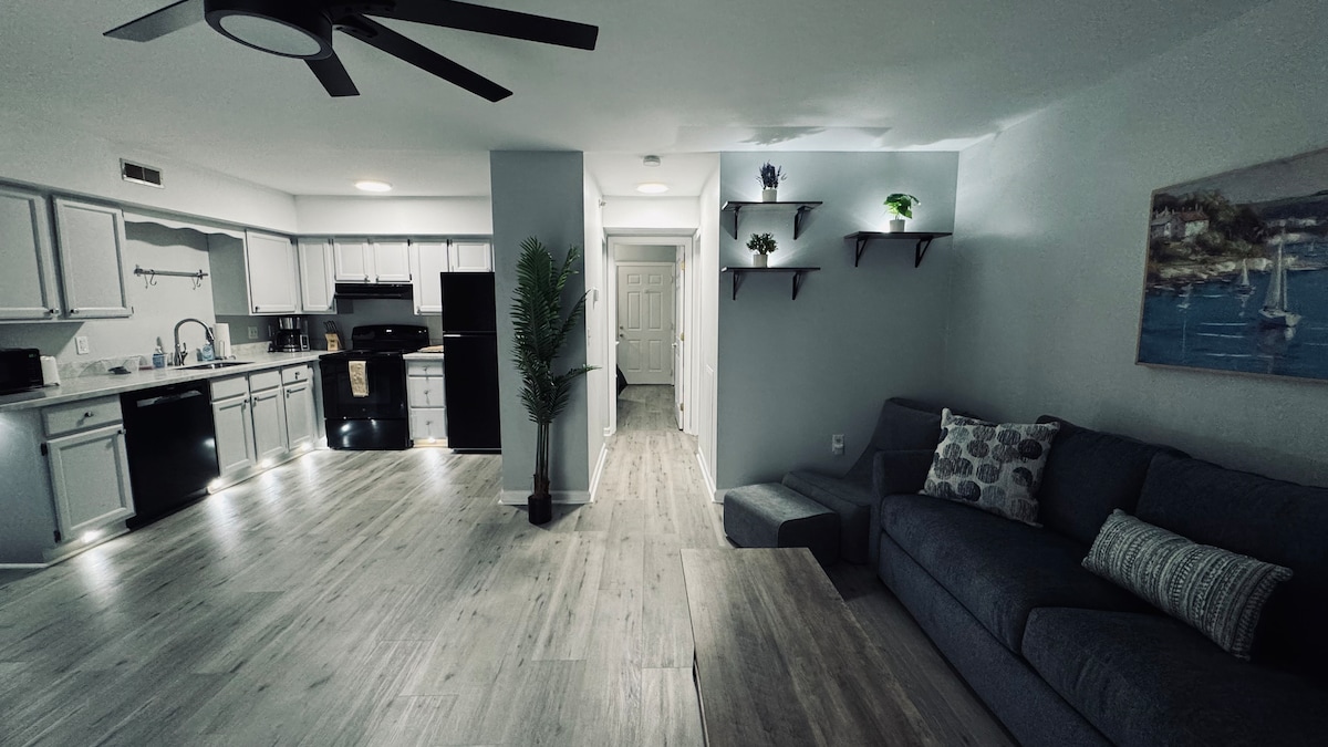 ¡Te damos la bienvenida al paraíso de los amantes de la playa! Disfruta de unas vacaciones en un apartamento de 2 dormitorios y 2 baños, a pocos pasos de las costas de Ocean City. Cocina equipada con electrodomésticos nuevos, café, ollas, sartenes y platos para todas tus necesidades de comida. El apartamento cuenta con lavadora/secadora, una acogedora sala de estar con TV inteligente y un balcón en el dormitorio principal. Capacidad para 6 personas (literas dobles, individuales, queen, sofá cama). Camina hasta la playa en 11 minutos y atracciones cercanas como Harpoon Hannah's, Fenwick Island y Sunsations. Se proporcionan sábanas y toallas. ¡Reserva ahora!