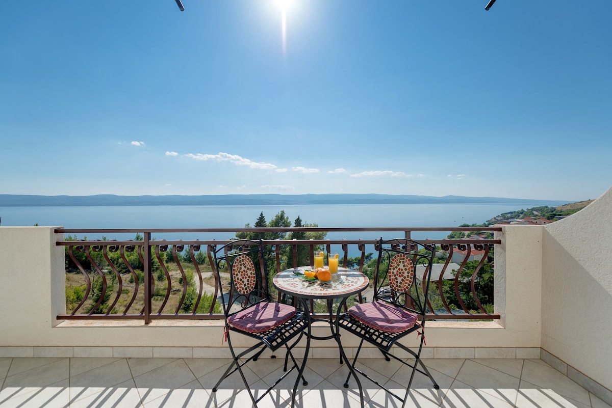 Ubicada en un pequeño lugar turístico llamado Mimice, esta lujosa villa es la opción perfecta para unas vacaciones familiares. Tiene capacidad para 14 personas, con 6 dormitorios con camas tamaño king, dos cocinas totalmente equipadas y salas de estar, 6,5 baños, piscina al aire libre y todo lo que necesites o desees para una estancia agradable entre familiares y amigos. Excelente ubicación, a solo 50 metros del mar y a 100 metros de la playa más cercana. ¡Split está a 35 km, Makarska a 24 km y Omiš a 10 km de la propiedad!