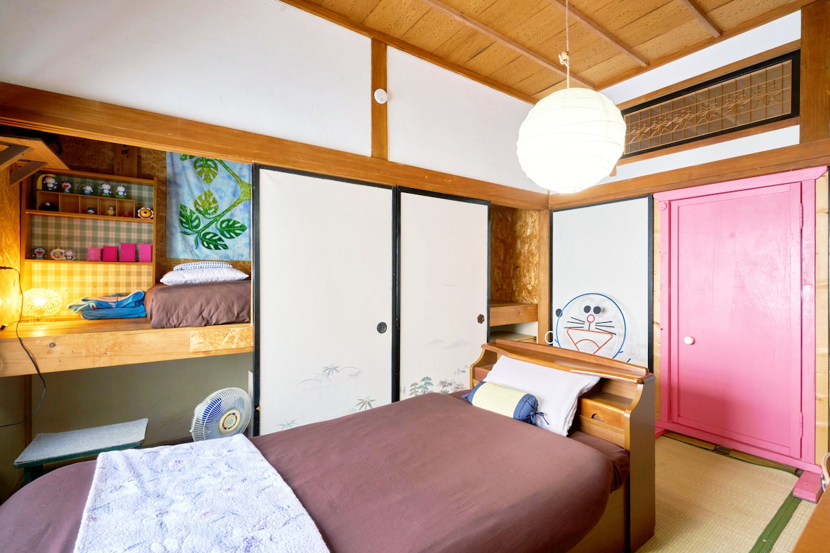 Se encuentra a 15 minutos en coche del aeropuerto de Asahikawa y a 3 minutos a pie de la estación de Kitamiei.Desde la ventana, puedes ver el tren de vía única de luto.En el loft, también hay una caricatura, libros, una colección de rompecabezas de ghibli hechos por el propietario y un proyector donde puedes disfrutar de películas y anime en la pantalla grande.En verano y otoño, también puedes disfrutar de una barbacoa al aire libre.También hay aparatos de cocina, por lo que puedes comprar ingredientes y cocinar fácilmente.El propietario está cerca, así que siempre estoy disponible si tienes alguna pregunta.Tenemos perros, gatos, cabras, patos y pollos.Si tienes suerte, podrás interactuar. El desayuno es básicamente con onigiri. Puedes alojarte con tranquilidad incluso si eres una sola persona.El precio indicado es para 4 personas.Si estás solo, será el precio de➗ 4 de los precios indicados.Por supuesto, dos o tres personas son bienvenidas.Ofrecemos un descuento a partir de la quinta persona.No dudes en pasar por aquí.