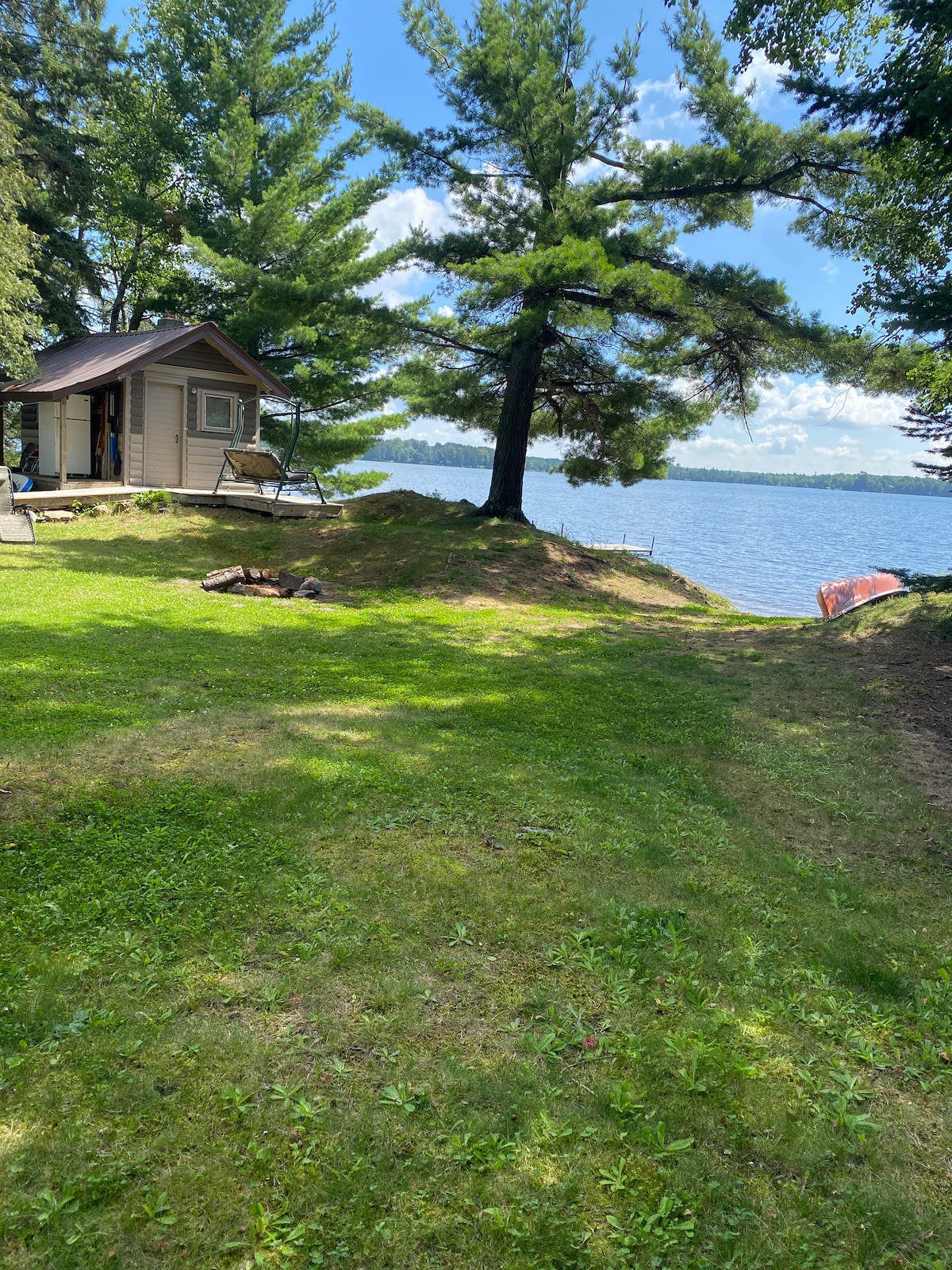 Si buscas aislamiento y privacidad, ¡lo has encontrado! Escucha el llamado de los colimbos o contempla la puesta/salida del sol desde el muelle. Este espacio es perfecto para los campistas que quieren la comodidad de una cama acogedora, ducha caliente y aire acondicionado, pero se sienten cómodos usando un baño exterior, ya que la caravana no está conectada al sistema séptico. ¡Incluyo dos kayaks, una canoa y un bote de remos para explorar el lago! Este paraíso de 5 acres en el lago Shell está convenientemente ubicado entre Detroit Lakes y Park Rapids.