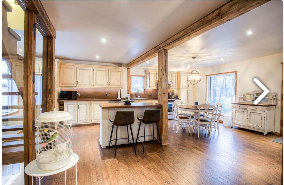 Acogedor chalet familiar en Laval Disfruta de una estancia tranquila en este espacioso alojamiento de 3 dormitorios, perfecto para familias, parejas o trabajadores. Situado en un barrio tranquilo cerca de un parque y el río, a poca distancia en coche de Montreal. Dormitorios • Habitación 1: cama tamaño queen (110” × 157”) • Habitación 2: cama individual (100” × 107”) • Habitación en el ático: cama tamaño queen + cama individual (techo de 67") Cocina. Equipado con tostadora, microondas, horno, nevera, congelador, cafetera y Nespresso. Dos FireTV para streaming, además de juegos y juguetes para niños.