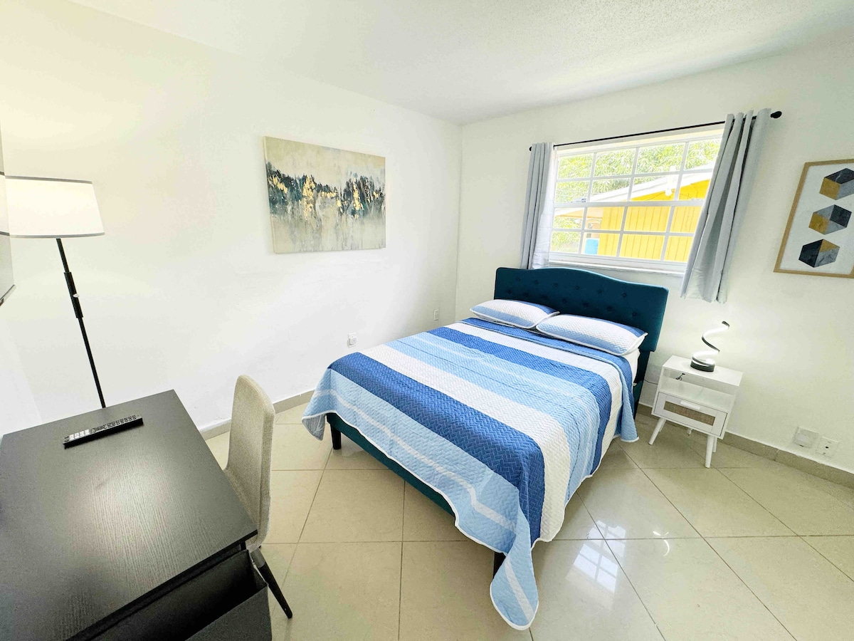 Este es un refugio moderno de mediados de siglo recién reformado en el corazón de Pembroke Pines. Este cómodo estudio es ideal para estancias cortas, con una cocina completa, un baño bellamente actualizado y una amplia sala de estar. Relájate en una cómoda cama tamaño queen y un futón que se abre a una cama doble. Incluye café de cortesía, artículos de aseo, wifi rápido y un televisor inteligente con aplicaciones de streaming. Sumérgete en la comodidad y el estilo en este acogedor espacio en la vibrante Pembroke Pines.