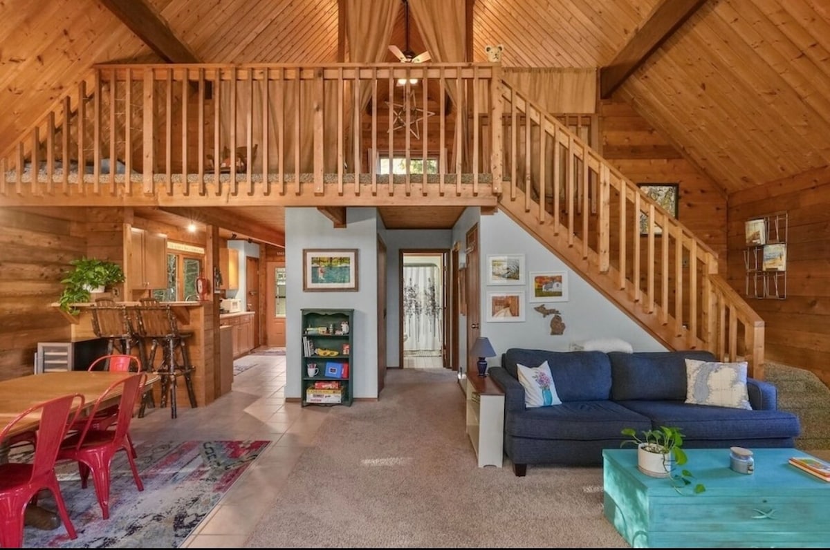 Cozy Log Cabin w. Lake View, Kayaks, Beach Access!