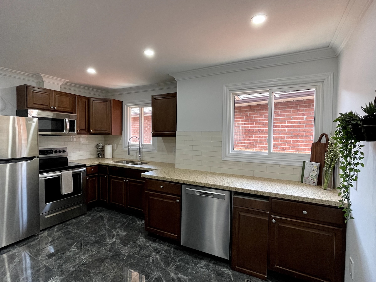 Renovado y amueblado con buen gusto; amplio apartamento de 1 dormitorio de 1000 pies cuadrados en el nivel inferior 1 con sótano y puertas francesas. Mucha luz solar natural. Cocina completa y electrodomésticos, incluido lavavajillas. Impresionante mármol nuevo en el baño. Lavandería compartida en la suite con el inquilino de arriba. A minutos de Square 1, el Hospital Trillium y el aeropuerto. A menos de 25 minutos del centro de la ciudad. Al igual que con cualquier hogar, escucharás pasos de la unidad de arriba, ya que hay un solo inquilino que sale de arriba.