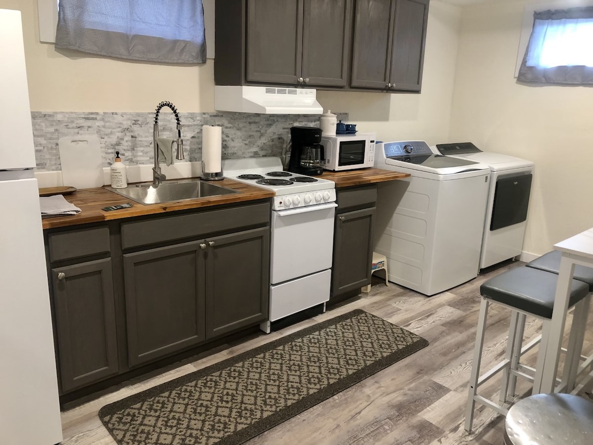 Este apartamento de 2 dormitorios/1 baño en la planta baja tiene capacidad para 4-6 huéspedes. Acceso fácil a la universidad y al centro de la ciudad. Camina hasta rutas de senderismo y cafés en minutos Somos aptos para familias y damos la bienvenida a perros bien educados. A los huéspedes les encanta nuestro espacio limpio, camas cómodas, acceso a la lavadora/secadora, TV con Netflix, cable + deportes y recomendaciones locales Trabaja desde casa con un espacio de trabajo + 5G Café/té, nevera/congelador, microondas, platos y sábanas incluidos Llegada/salida autónoma + estacionamiento gratuito