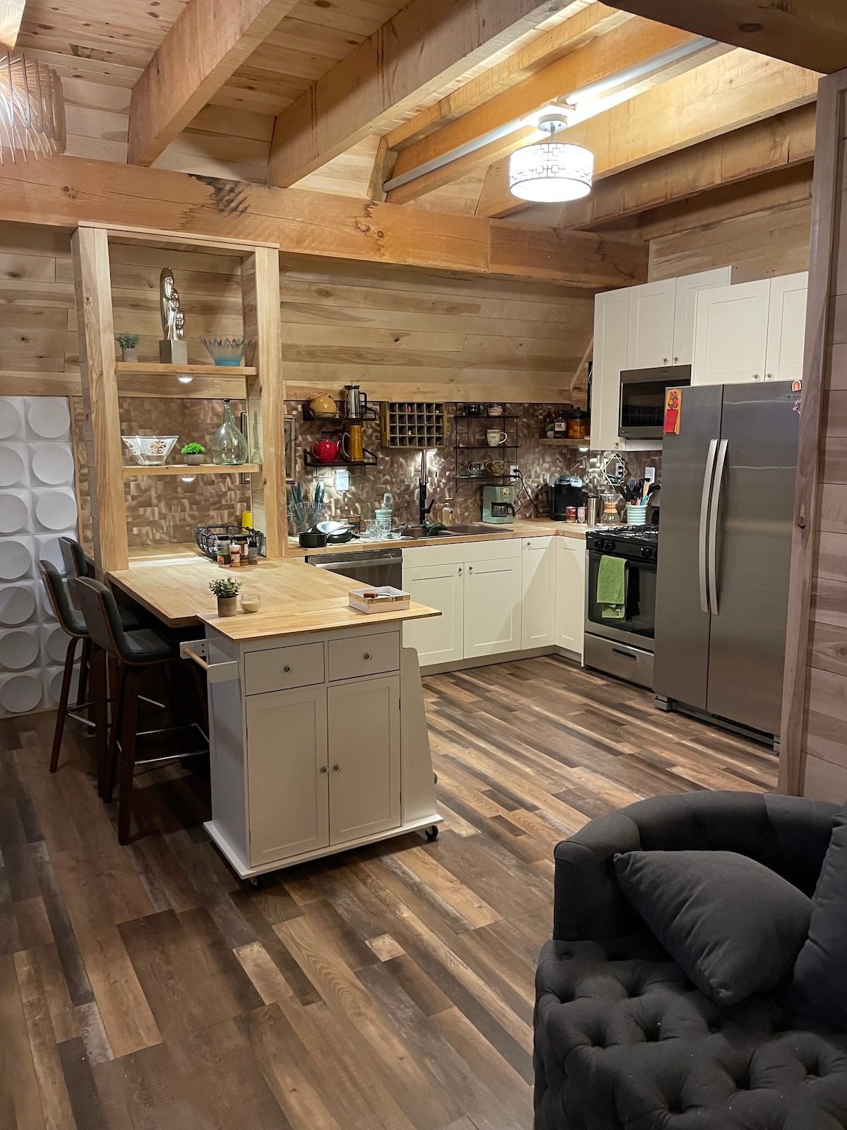 Construida como una escapada de invierno o verano para una pareja o un grupo pequeño, esta hermosa cabaña de cuatro estaciones es una excelente manera de experimentar los Northwoods de Wisconsin en un espacio moderno, bien equipado y estéticamente rico, diseñado pensando en la relajación. La cabaña es nueva desde enero del 2024. El anfitrión es un «Superanfitrión» de 14 años Esta es una cabaña "sin mascotas" predeterminada, sin embargo, solo se permiten ciertos tamaños y razas con permiso. Tenemos un enchufe NEMA 15-40R para carga de vehículos eléctricos de nivel 2. Traes acordes y adaptador