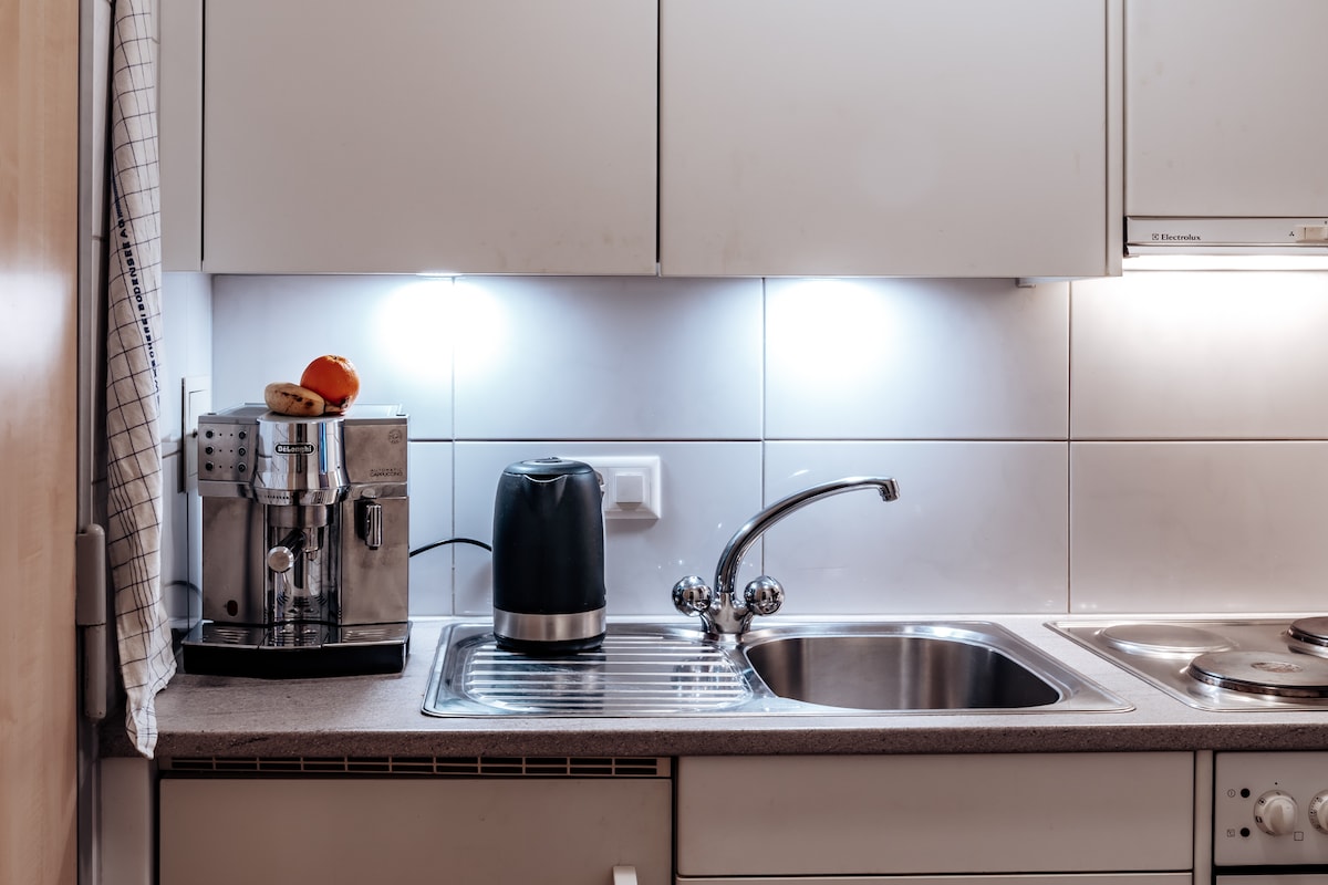 El pequeño loft está en la planta baja de una casa señorial. Es moderno y está cómodamente amueblado: baño elegante en negro y latón, paredes de yeso de cal blanca, suelo de hormigón de diseño con calefacción, muchas ventanas, acceso directo al jardín. La habitación inundada de luz, la tranquilidad y el jardín invitan a relajarse. Las vistas de las colinas y los Alpes te dan ganas de hacer senderismo y ciclismo. La estación de tren y la plaza del pueblo con restaurantes y una tienda de comestibles están a solo unos pasos (4 min).