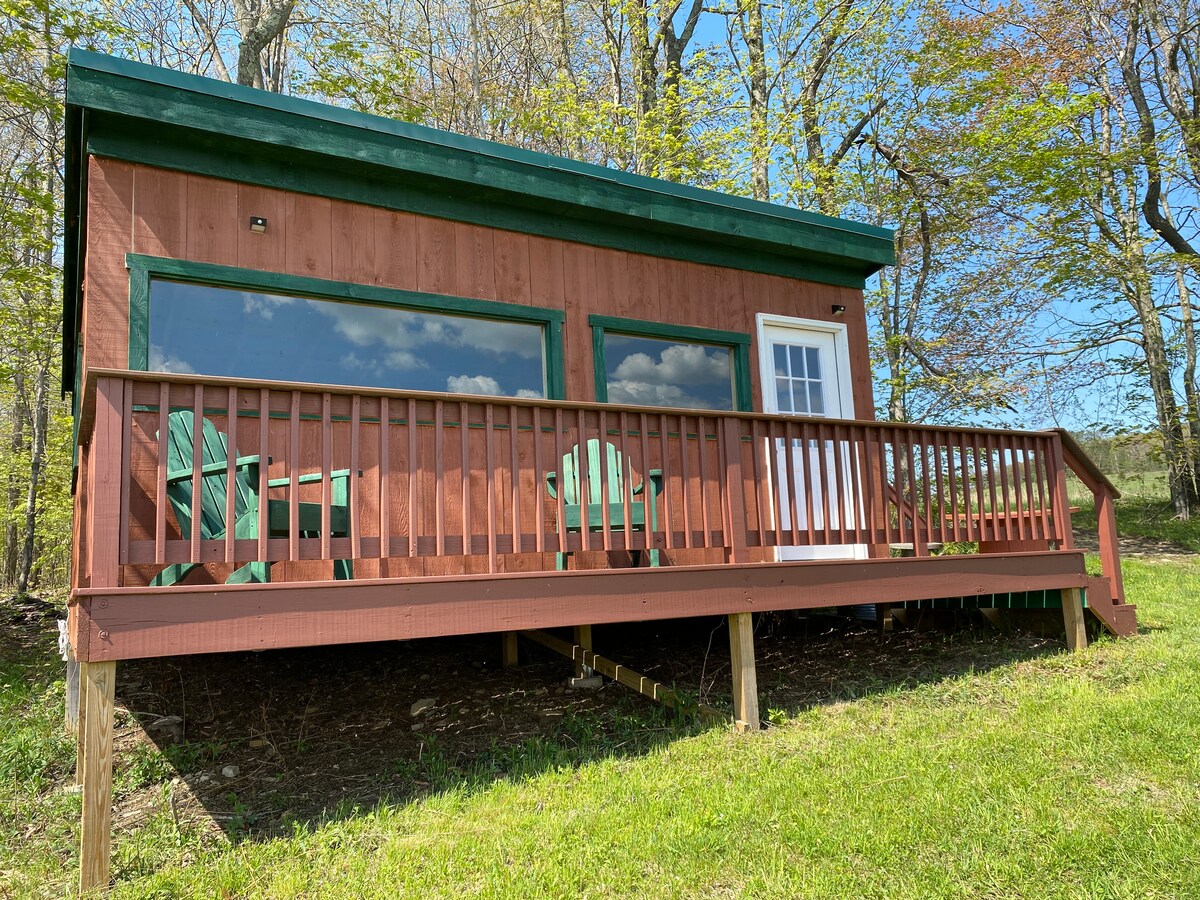 Acogedora cabaña de madera de 2 dormitorios con impresionantes vistas a la montaña, gran terraza y entorno tranquilo. Cerca de Howe Caverns, Thacher Park, Altamont Fairgrounds y rutas de senderismo. Cocina totalmente equipada, estufa de pellets, barbacoa, sillas Adirondack y cenador. Perfecto para parejas, familias o amigos. Escapada durante todo el año cerca de aventuras al aire libre, rutas panorámicas y atracciones locales.