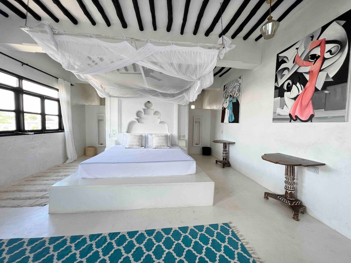 El apartamento Khayrat, ubicado en el corazón del bullicioso pueblo de Shela, es el alojamiento perfecto para tus vacaciones en Lamu. Nuestro apartamento en la planta superior consta de dos plantas, la inferior consta de dos dormitorios con baño, una cocina totalmente equipada, una acogedora sala de estar y dos balcones. Aunque este piso es muy cómodo, ¡nuestra azotea es el lugar ideal! Tendrás una vista de 360 grados del pueblo, el océano y las dunas de arena detrás de Shela, incluidos increíbles atardeceres y amaneceres. El apartamento Khayrat tiene capacidad para 4 personas.
