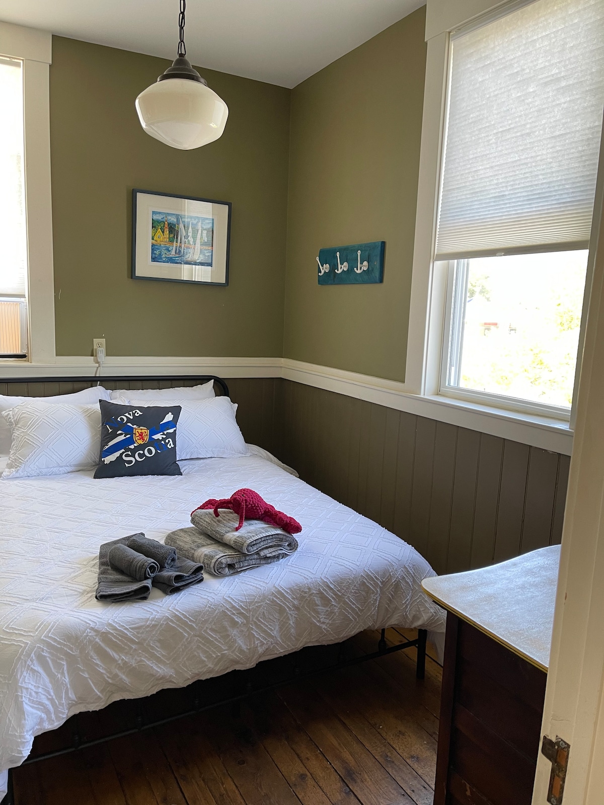 The fully updated suite, boasts breathtaking, panoramic harbour views, sprawl out on the king-size bed and let your dreams set sail. Enjoy front row waterfrontage, boats sailing by, horses trotting along the iconic Bluenose Drive. This 19th century building offers the perks of a boutique hotel; infrared sauna, bathrobes, LED TV, iron, hairdryer, Keurig, microwave, mini fridge, with its own private entrance. Located 50m from the Bluenose, you can not get any closer, without staying onboard!