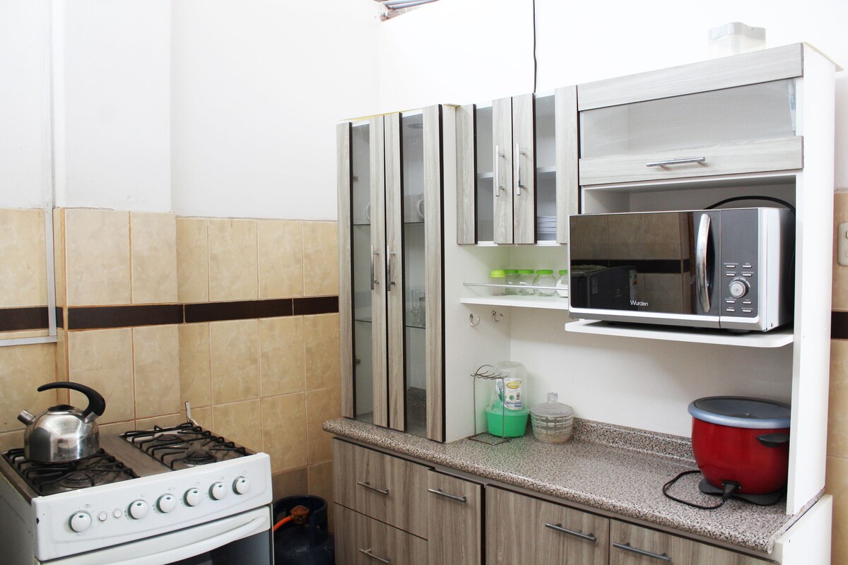 Departamento ubicado en un segundo piso donde Tu familia estará cerca al centro y al circuito de playas está ubicado a 5 minutos caminando de la plaza y a 10 minutos de la playa .