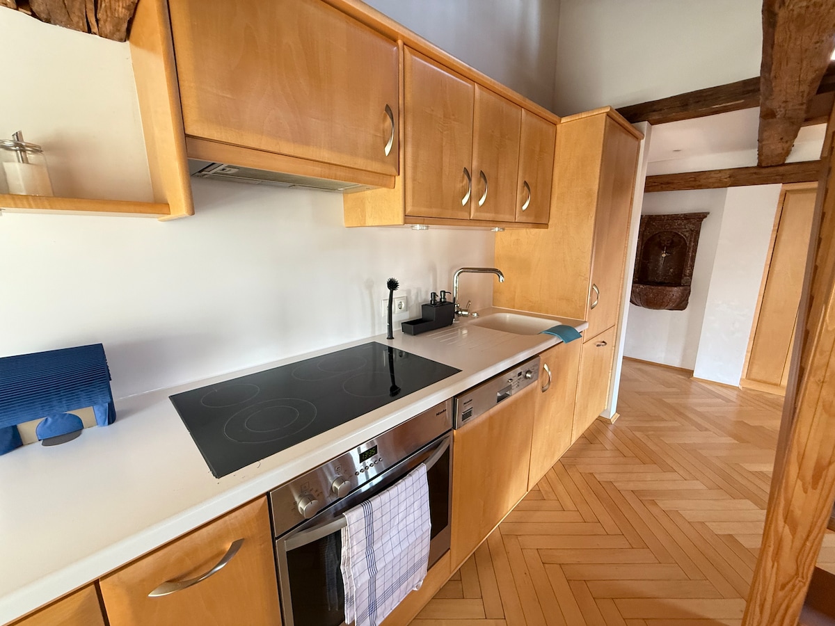 In our renovated historic townhouse in prime location, a modern 21 m² (225 sq ft) guest studio for 1–2 people awaits you. It is safely accessible via a shared stairwell, with a separate entrance. Enjoy full privacy in your own area, used exclusively by you. In our inner courtyard below the fortress, a small private seating area is available for your exclusive use. The local overnight accommodation tax is included in the price and enables free use of public transportation.