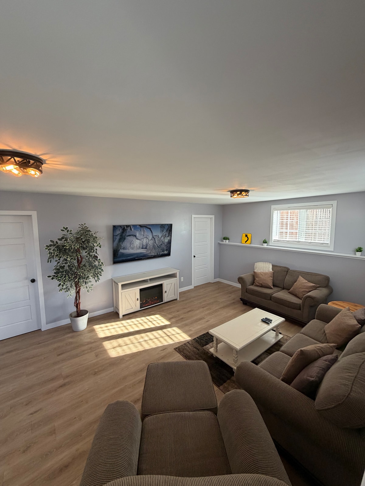 Trae a familiares y amigos a esta casa de 3 dormitorios (2 camas tamaño queen + litera) con baño completo y cocina totalmente equipada. Relájate junto a la chimenea de propano en el solárium o disfruta del NUEVO Party Garage con bar, mesa de billar, TV, sofá, juegos para niños y juguetes. Sendero y parque a pocos minutos. REGLAS: se requiere una exención para el uso del garaje, los huéspedes cubren TODOS los daños, tarifa de mascota de 50 $, 25 $/huésped adicional después de 4, se aplica una tarifa de salida después de la hora establecida. Las cámaras vigilan la parte delantera y el garaje. Inquilino del sótano en el sitio.