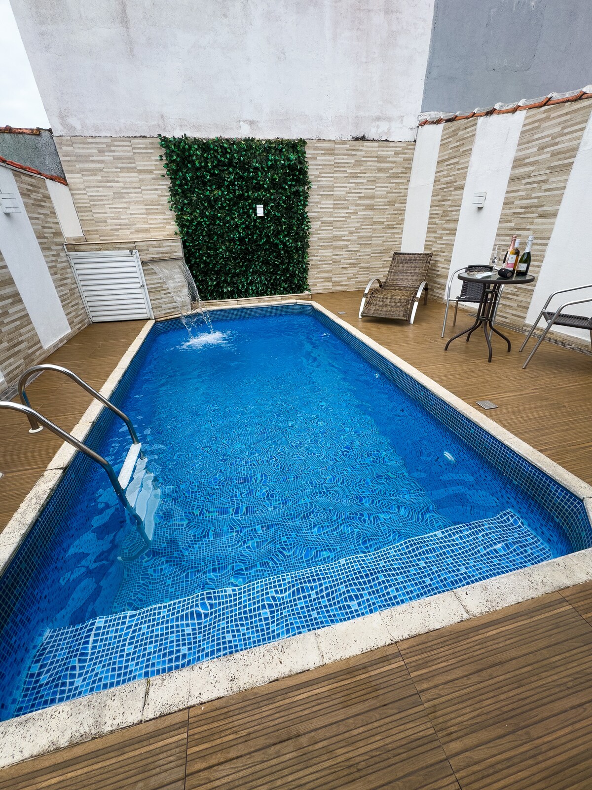 ¡Retiro de lujo y estilo para parejas en São Vicente! Espacio exclusivo para parejas con buen gusto. Relájate en el EXCLUSIVO jacuzzi, la piscina de la azotea con unas vistas increíbles, perfecta para una luna de miel o fechas conmemorativas. Ubicación privilegiada: a solo 600 m de la playa de Gonzaguinha y a 2 minutos a pie del centro comercial Brisamar, rodeado de excelentes restaurantes. Servicios: aparcamiento INCLUIDO con aparcacoches, sala de juegos y seguridad total. La mejor opción para momentos inolvidables en pareja