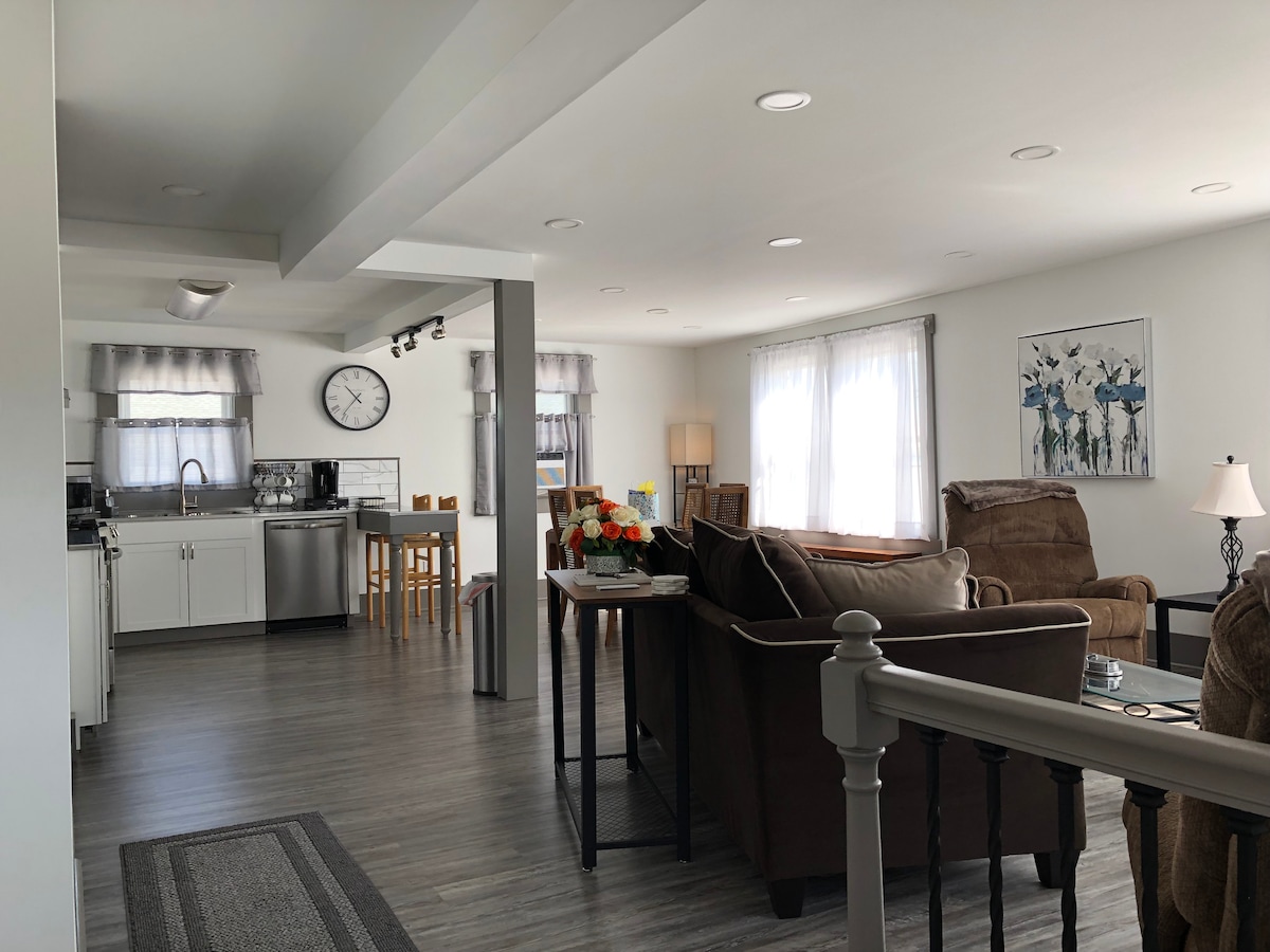 Esta eficiente suite de invitados se encuentra en el corazón de Steubenville (a 17 millas/20 minutos del pabellón Star Lake). Separado por una colina de nuestra casa familiar, el loft ofrece un lugar sencillo para descansar después de un largo día de viaje, trabajo, conferencias o lo que sea que pueda llevarte a Steubenville. Construimos este espacio para huéspedes sobre nuestro garaje de trabajo pensando en visitar a la familia y esperamos que te sientas como en casa como nuestro huésped.