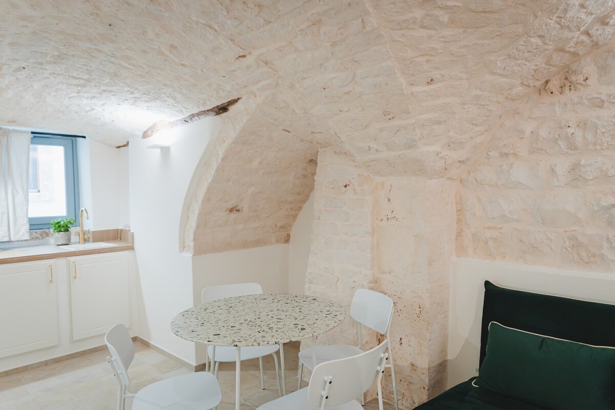 La Dépendance es el hogar romántico y acogedor que estabas buscando. Históricos trullos y lamie en el fabuloso Valle d'Itria que alojan cómodamente a 2 o, como máximo, 3 personas. La casa tiene una cocina pequeña y un baño privado, un patio exterior amueblado donde puedes disfrutar de deliciosas comidas y relajarte con total privacidad, y también hay una bañera de hidromasaje compartida con mi familia que se puede utilizar en períodos cálidos.