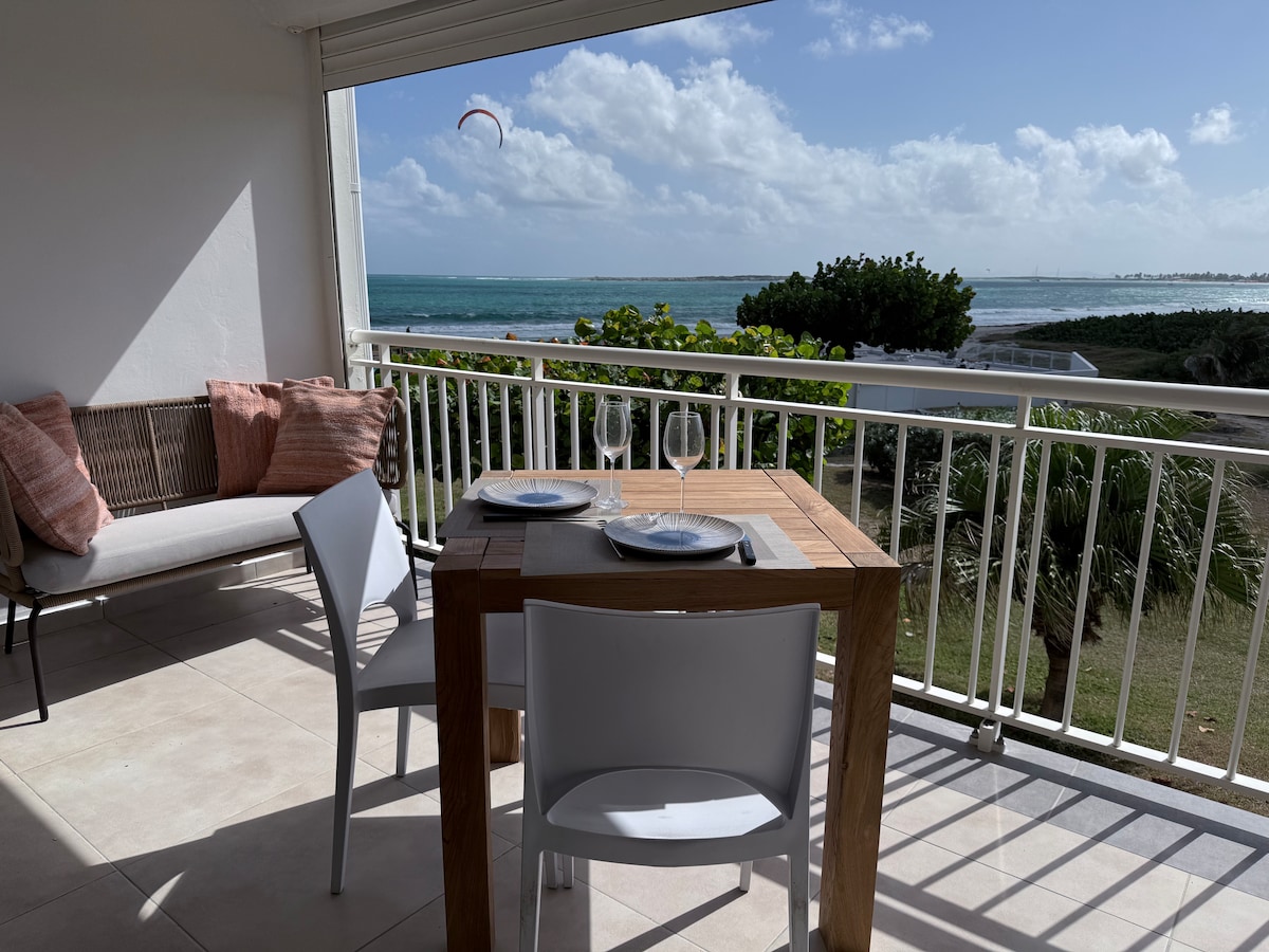 ¡Para una estancia tranquila y apacible venga a descansar en este estudio con una vista al mar increíble! - A solo 5 minutos a pie de la playa de la Bahía Oriental y de la piscina de la residencia. - Supermercado/Pizzería/Lavandería se encuentran en la entrada de la vivienda - Equipado con una cocina con microondas (sin horno), cafetera Nespresso, lavadora, plancha, detector de humo, aire acondicionado y TV con Netflix. - A 10 minutos en coche de Grand Case.