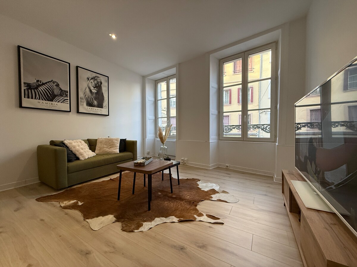 ✨ Al pie del Castillo de Montbéliard, en un hipercentro, venga a descubrir un estudio cálido y acogedor 🏰 Ofrecemos: 🌳 Magnífico comedor de pie de roble macizo de los Vosgos 🛠️ Renovada en 2023 con materiales de calidad - Wifi, TV, Netflix - SDB, toallas de baño - Ropa de cama - cocina equipada Este alojamiento está idealmente situado en: - A 200 metros de la estación de tren - 200m de la calle peatonal (mercado de Navidad), - 100 m de la parada de autobús principal la acrópolis - a 5 minutos de Stellantis