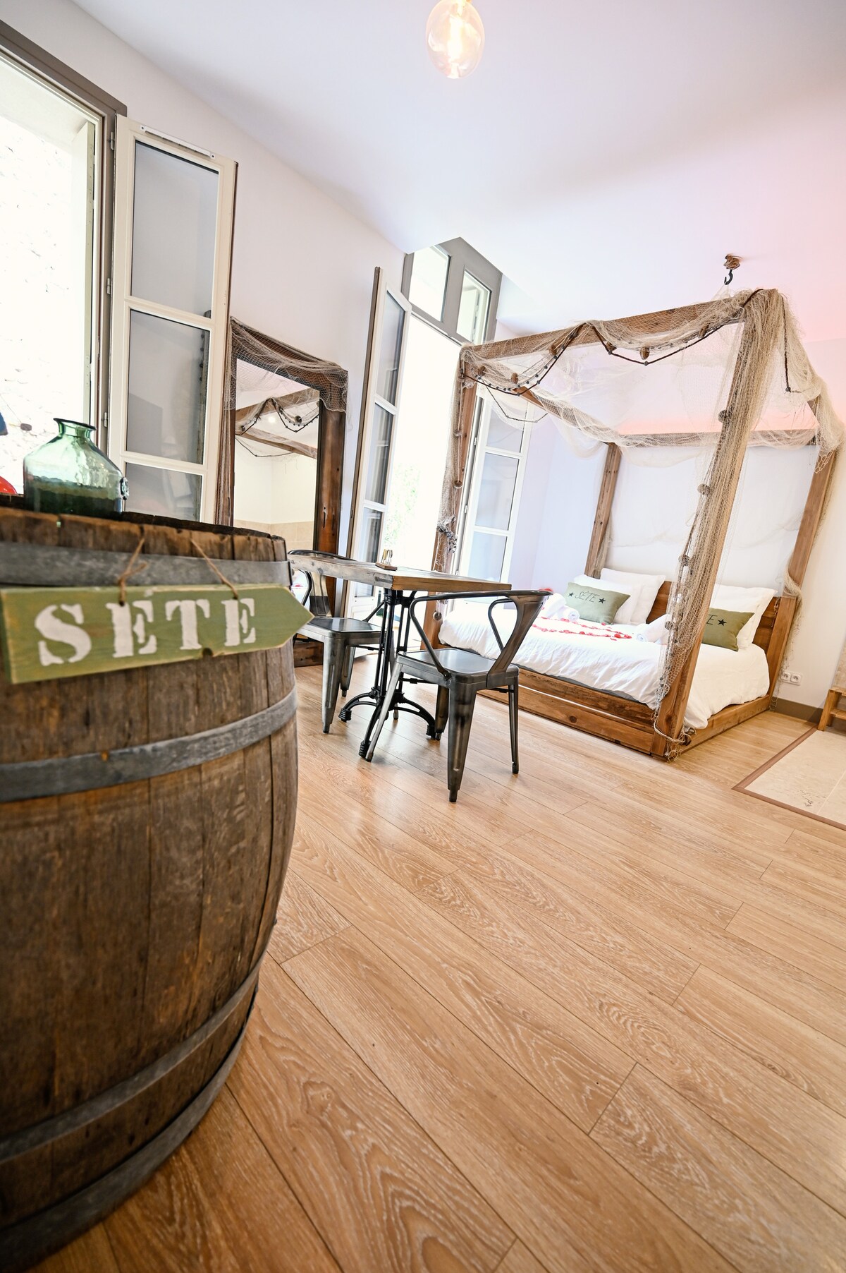 Véritable ancienne maison de pêcheurs des années 1940 réhabilitée en suite haut de gamme, avec spa intérieur à la décoration soignée et épurée. Avec des équipements de qualités baignoire balnéo 150cm, plafond tendu rétro éclairé à variation de lumière, lit King size 180/200, écran tv 165cm, douche à l'italienne. Venez profitez et vous détendre dans ce cocon hors du temps à 100m de la mer et 300m du centre ville. Vous pourrez poser votre voiture et profiter de votre séjour à pied.