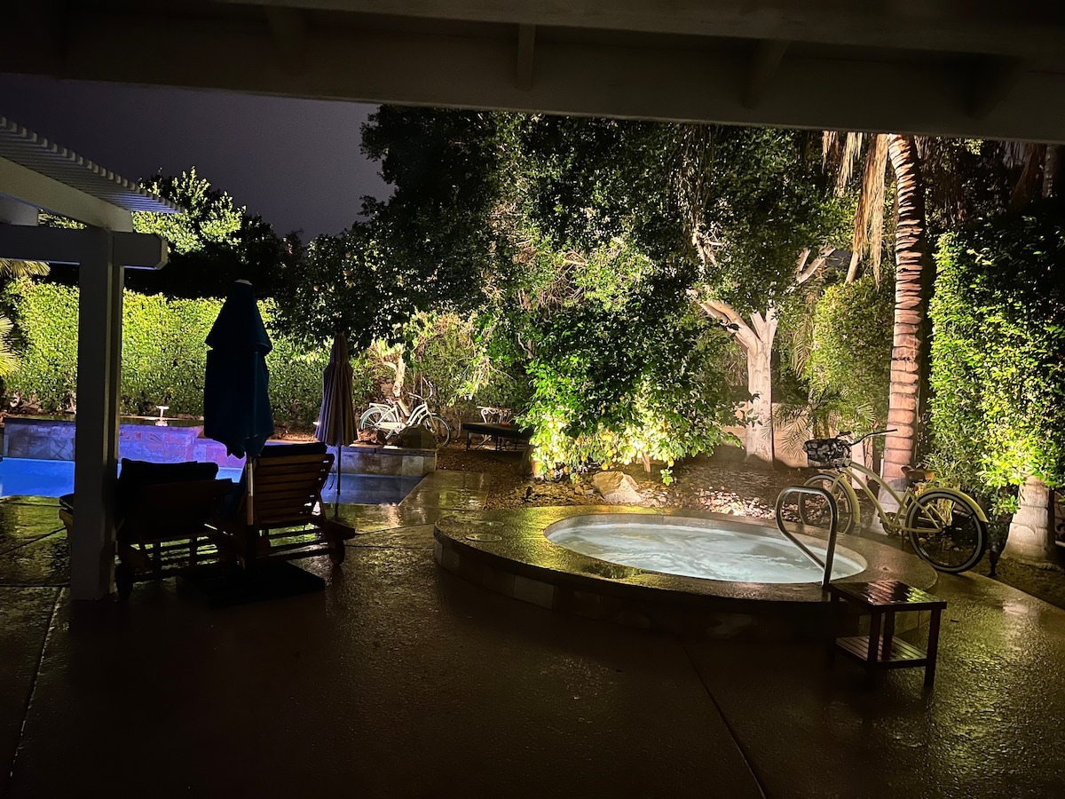rodeado de árboles frutales y cielos azules, pero aún cerca de Acrisure Arena, Marriot, Eisenhower y Betty Ford. Golf, tenis, rutas de senderismo, restaurantes, compras, películas, 4 casinos con entretenimiento. Lea algunas de nuestras increíbles reseñas, ¡cerca de 1000!Retiro romántico o perfecto para alojarse para asistir a bodas,conferencias, etc. Estacionamiento gratuito de alta velocidad con wifi. Experiencia muy tranquila y relajante. Alojamiento privado con piscina y spa, máximo 4 adultos en el área de la piscina.