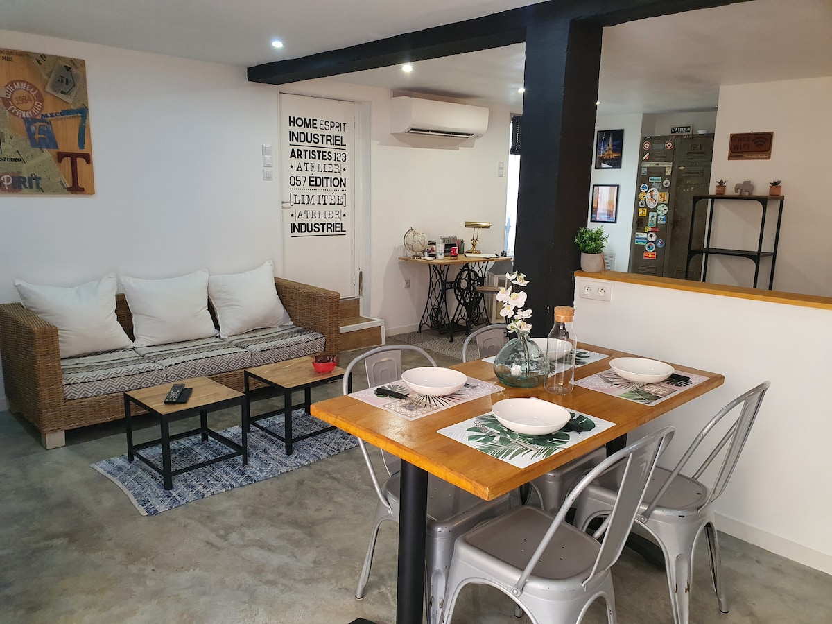 Estudio luminoso amueblado de 32 m2 con aire acondicionado en el corazón de Boulou, a dos pasos de todas las comodidades. Persianas eléctricas y doble acristalamiento. Wifi gratuito, fibra óptica. Varios estacionamientos públicos gratuitos, a 4 minutos a pie del apartamento. Situado entre el mar y la montaña, le esperan hermosos paseos (sitio histórico de la batalla de Boulou...) A 15 minutos de España, Perpiñán, Argelés-sur mer y Céret. Cerca de las curas termales, del Casino y de la piscina municipal.