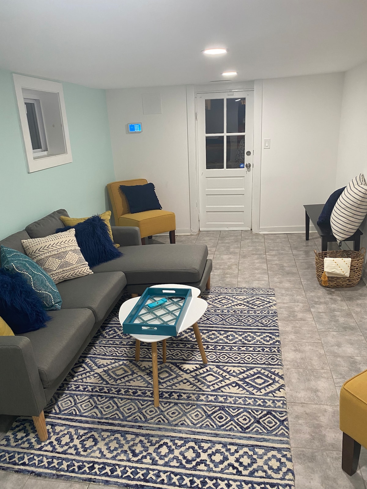 Bienvenido a nuestro elegante apartamento en el sótano, perfecto para viajeros modernos. Tanto si estás aquí por trabajo como por placer, este espacio tiene lo que necesitas. Situado a pocos minutos del metro, el aeropuerto y los principales centros de trabajo. El apartamento cuenta con un escritorio con dos monitores, teclado, ratón e internet de 1 GB. Por la noche, relájate en la lujosa cama tamaño king. Un sofá futón convertible con un televisor de 65 pulgadas te espera para tus sesiones de televisión. Una lavadora/secadora y cocina completa, con nevera y estufa completan el espacio.