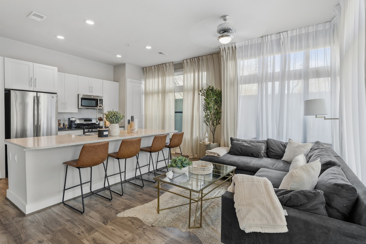 El diseño magistral y la elegancia moderna se encarnan de manera única en este alojamiento. La casa ofrece un diseño abierto, muebles elegantes, colores neutros y brillantes en contraste con una estética moderna en general. ✔ Ubicado en el corazón de Montrose, a minutos del centro de la ciudad. ✔ Puntuación de 91: ¡puedes ir andando a todas partes! ✔ Capacidad para más de 5 personas en 2 camas tamaño king y un sofá modular. Smart TV de✔ 75 pulgadas con Netflix, Hulu, Disney+ y ESPN GRATIS. Internet wifi de fibra de✔ alta velocidad de 1 Gbps. ✔ Aparcamiento reservado gratuito en un solar privado.