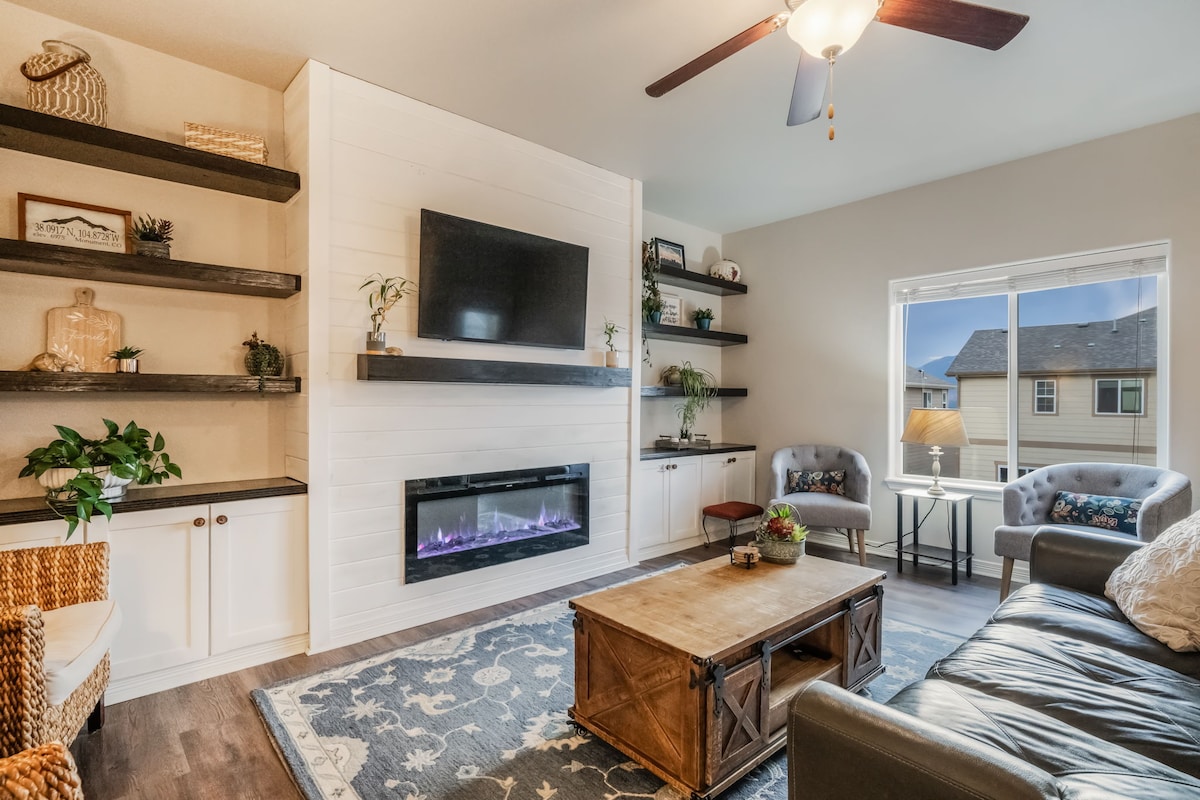 Especial de retiro de invierno de enero. Acogedora junto a la chimenea con vistas a la montaña, perfecta para reuniones familiares, retiros de trabajo o una escapada tranquila. ¡Moderna casa de 5 dormitorios en el hermoso lago Palmer con impresionantes vistas a la montaña y al lago! Tiene capacidad para 10 personas cómodamente con muebles nuevos, un garaje para 2 autos, WiFi rápido. Disfruta de una gran terraza con fogata y parrilla, fácil acceso a los senderos y al lago, y un rápido viaje a Colorado Springs y la Academia de la Fuerza Aérea.