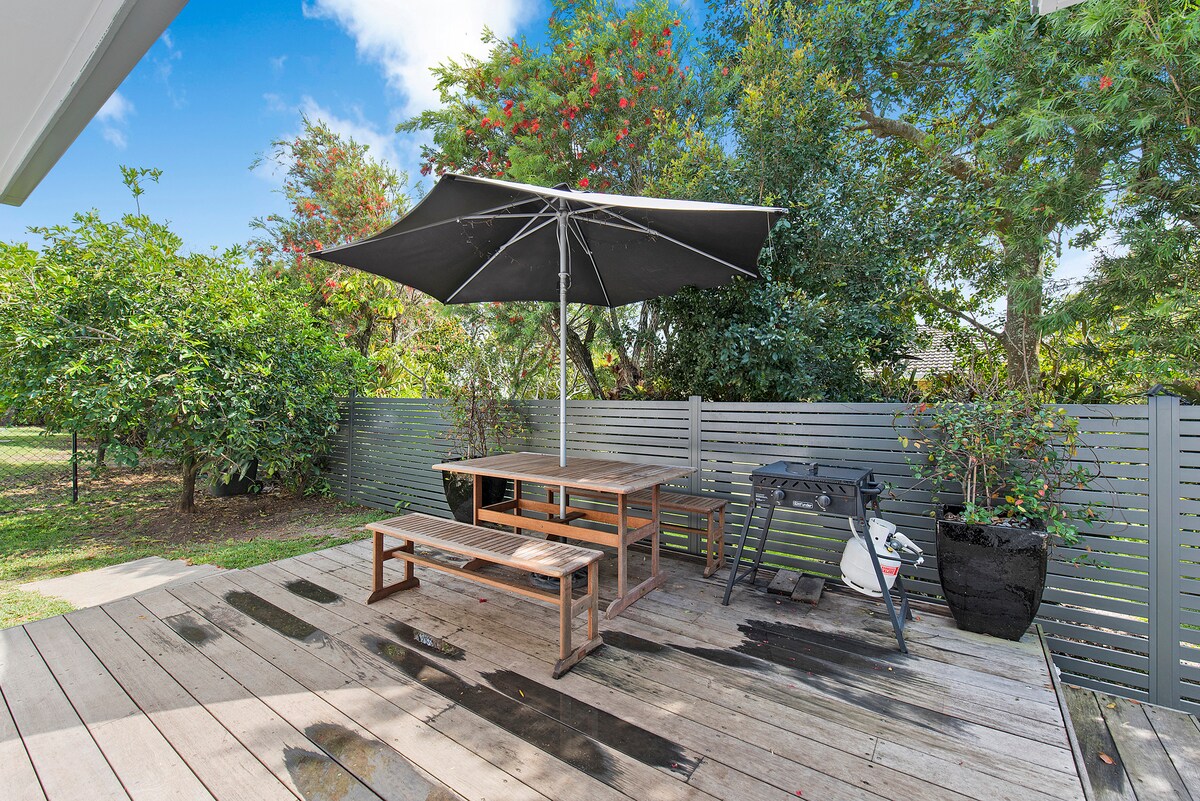 Esta preciosa casa de campo aislada es perfecta para una escapada tranquila a la costa. Separada de la casa principal, tendrás tu propio espacio en un entorno sereno de arbustos. Perfecta para el placer y los negocios (conveniente para la universidad). Ofrecemos muchas comodidades: - Aire acondicionado por conductos. - Ventiladores en todas las habitaciones. - Cafetera. - 2 dormitorios con camas tamaño queen Cuna grande - sala de estar, cocina, baño - microondas, horno, vitrocerámica, hervidor de agua, barbacoa, - TV