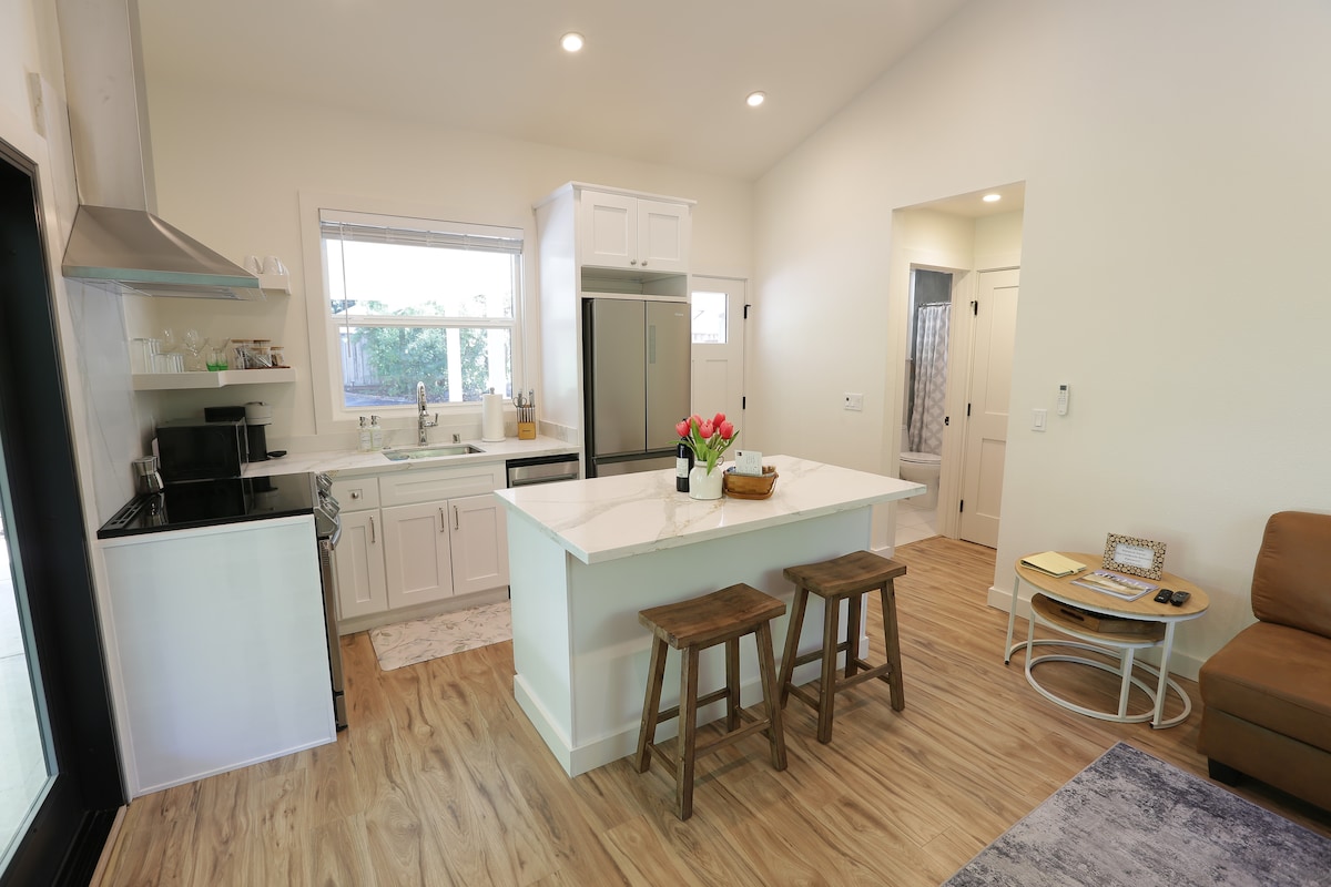 Situada en el corazón del muy deseable barrio de Almond-Shuey, en el centro de la ciudad, esta acogedora casa de huéspedes se encuentra en los mismos terrenos y justo detrás de nuestra casa de estilo bungalow (también en Airbnb). La casa de huéspedes recientemente remodelada se ha transformado en una escapada cómoda y elegante para el placer, los negocios o para visitar a amigos y familiares. ¡Aparca una vez y camina a casi todo lo que el centro de Walnut Creek tiene que ofrecer! Disfruta de la sencillez de este alojamiento tranquilo y céntrico.