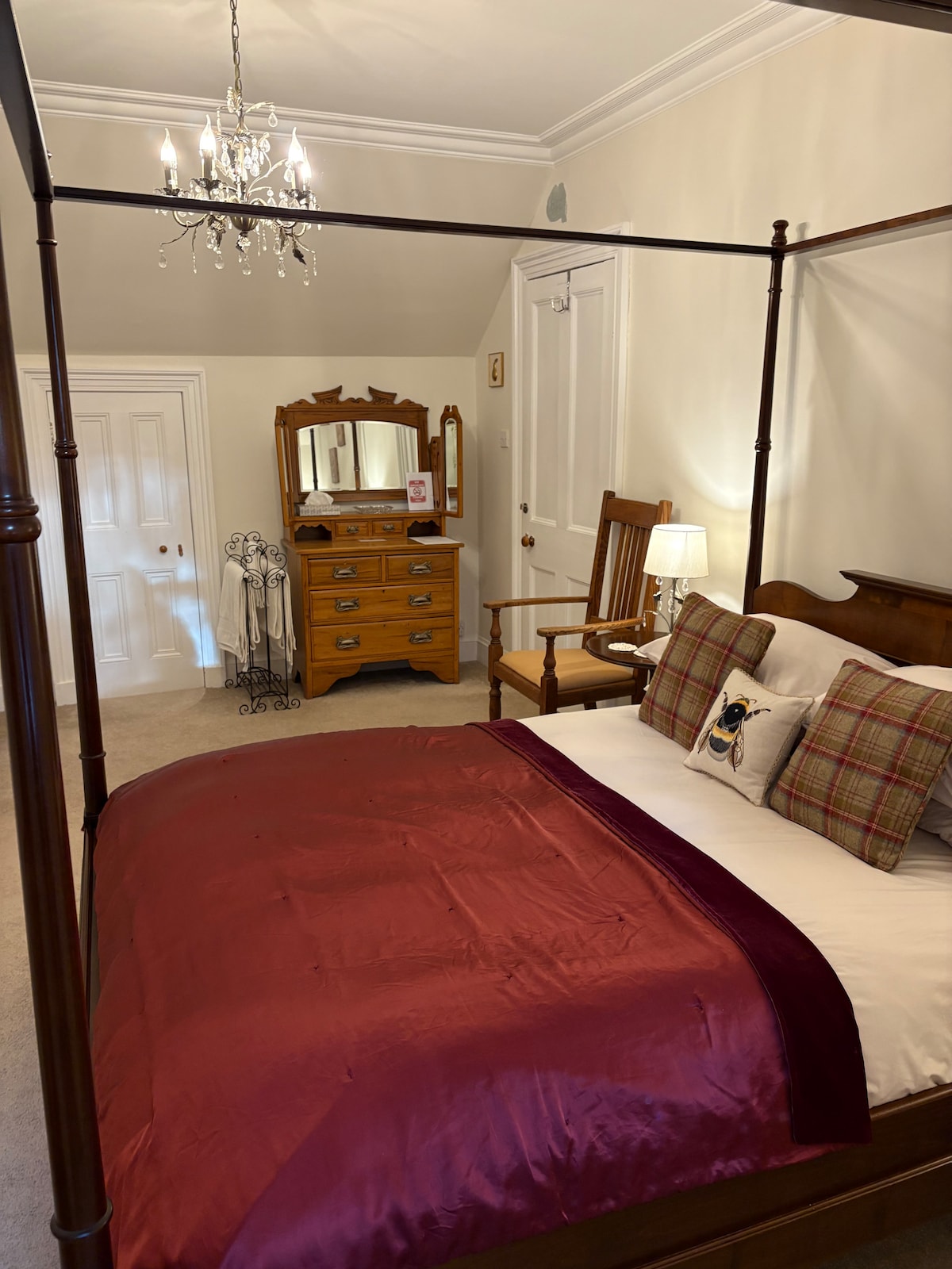 Bank House on the Don B&B is a 18th-century villa in Strathdon, within the Cairngorms National Park, once home to the local bank manager. The Bumble Bee Room, in the quiet back wing, overlooking the Water of Nochty, has a private bathroom. Guests can enjoy the riverside garden and are just a minute’s walk from the River Don. Whether you're here for walking, wildlife, skiing, or to disconnect, Bank House on the Don offers a peaceful Highland retreat. Breakfast is included, served in the Red Room.