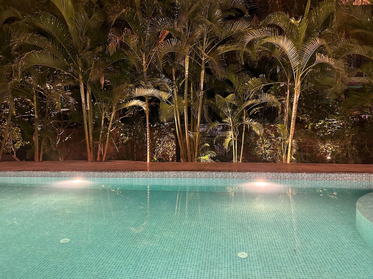 Balcón con vistas a la piscina premium junto a la playa de Candolim.