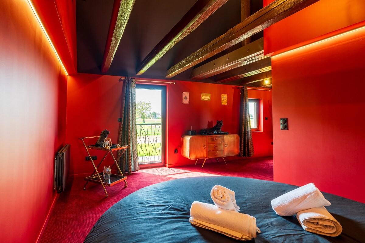 Este alojamiento tiene un estilo decididamente único. Un apartamento de alto standing para momentos de relajación e intimidad en un contexto lujoso. Una sala de estar abierta a la cocina equipada con un proyector de vídeo gigante y un cine en casa para sumergirse por completo en una noche de relax. Amplia habitación con una cama QueenSize (160x200) de lo más cómoda. Un lujoso baño con ducha a ras de suelo que incluye un jacuzzi para 3 personas y una sauna para 3/4 personas con acceso directo a la habitación.