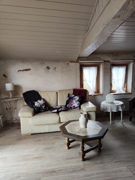 Respeto del protocolo de limpieza reforzada establecido por Air BnB Casa de campo de 130 m2 acondicionada en un antiguo granero distribuido en 2 niveles. Planta baja: sala de estar con zona de cocina y zona de estar. Aseo separado. 1 dormitorio con baño privado (+ lavadora). Planta superior: 1 dormitorio con baño privado + cama para 2 niños. WC separado. Exterior: patio inglés de 93 m2 con muebles de jardín + barbacoa + sombrilla + tumbonas. Espacio verde no vallado accesible desde el lado de la casa de campo y desde el lado de la casa.