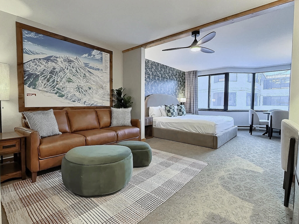 Uno de los condominios más alquilados de Crested Butte, ahora dividido como suite principal - La mejor ubicación: la verdadera entrada/salida de esquí al ascensor de Westwall. - Vistas increíbles del monte Emmons y Scarp Ridge desde la terraza. - Nuevo baño 2021 - Mininevera/congelador, microondas, máquina Keurig (sin estufa ni fregadero) - Colchón nuevo con cubrecamas de primera calidad, súper cómodo. - Bañera de hidromasaje en el edificio (solo temporada de esquí) - Acceso gratuito desde y hacia la ciudad y la escuela de esquí/base. - Nuevo TV inteligente 4KUHD con transmisión. - Se admiten mascotas (máximo 2 perros).