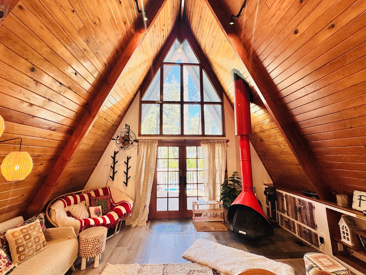 UNA ACOGEDORA CABAÑA TRIANGULAR UBICADA EN LO ALTO DE LOS ÁRBOLES * A 1 hora de Los Ángeles. * A 3 minutos del lago Gregory. * A 10 minutos de Arrowhead Aléjate de todo y disfruta de la paz y la tranquilidad. Relájate en dos terrazas panorámicas y en interiores elegantemente amueblados. Relájate en el amplio baño con un gran lavabo y una espaciosa ducha a ras de suelo para dos. La cama tamaño queen ofrece un acogedor refugio con vistas a las copas de los árboles. Mantente conectado con wifi, relájate con Netflix en la televisión inteligente y haz uso de la cocina completa en esta encantadora cabaña.