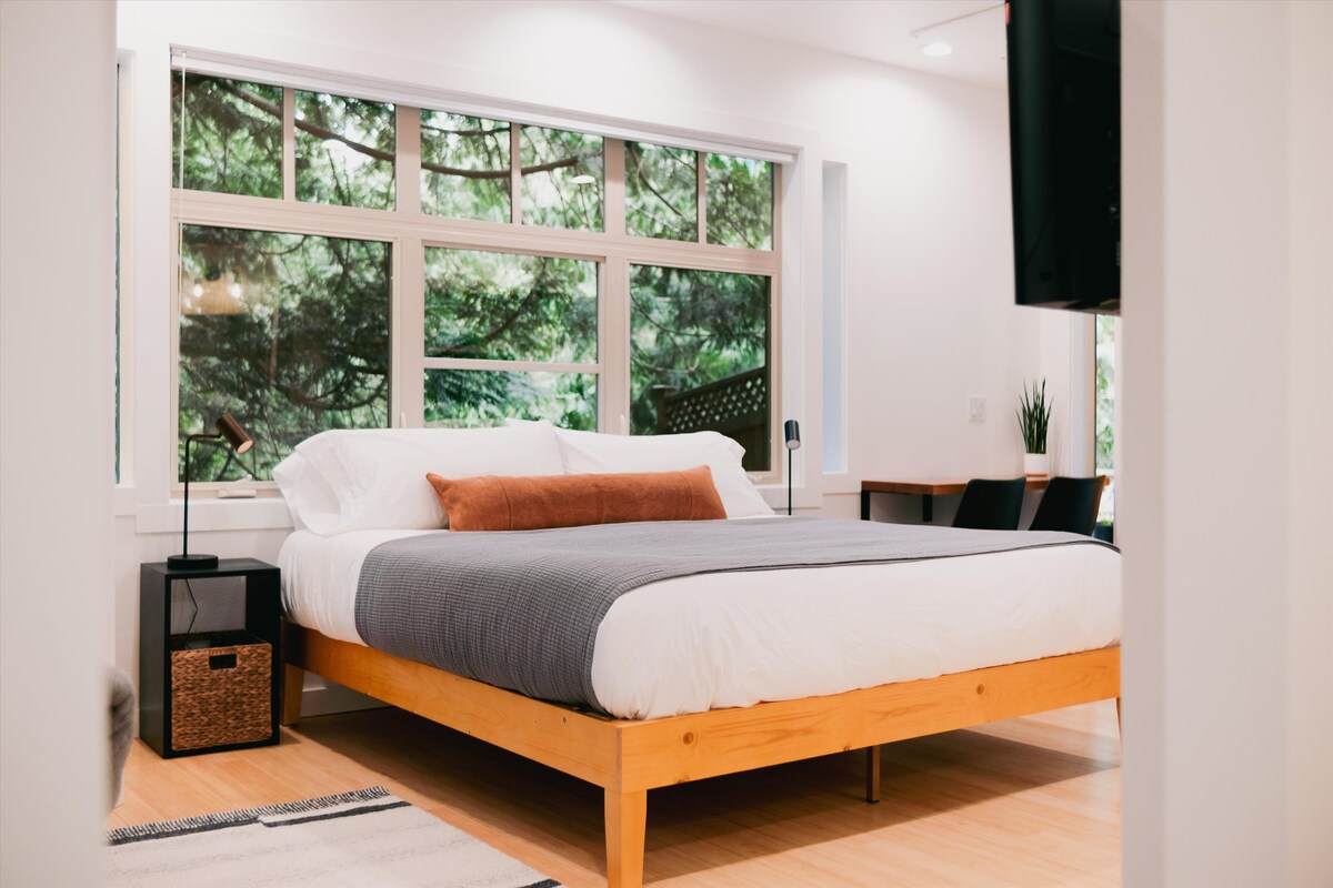 Bienvenido a esta suite recién renovada ubicada justo al lado de la autopista del monte Baker Hwy. Esta propiedad te permite «tenerlo todo» con una gran proximidad a Bellingham (a unos 7 minutos de Barkley Village) a la vez que proporciona una escapada a la naturaleza con comodidades modernas, asientos al aire libre y zonas de cocina, una casa del árbol, senderos naturales y un hermoso dosel forestal. Disfruta y relájate al aire libre sin sacrificar la comodidad del hogar. ¿Necesitan dormir más de 2? Puedes alquilar otra suite a solo unos pasos y dormir 2 personas más.