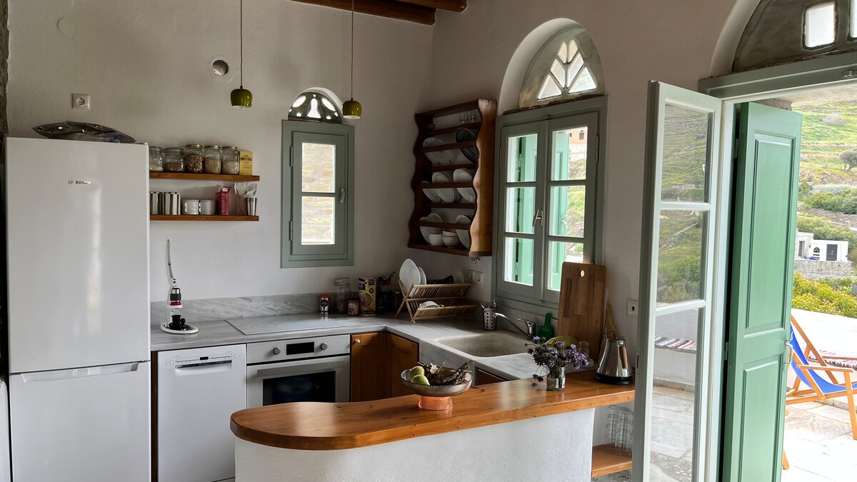La casa fue construida en 1887 en el pueblo de Arnados, un pueblo de construcción anfiteatral con vistas a las islas de Miconos, Syros, Paros y Naxos. La casa es de 90 metros cuadrados para 4 personas y renovada en 2006 – 2008 con respecto a todos los elementos arquitectónicos. Consta de dos dormitorios ( con camas dobles de construcción tradicional),baño con ducha,sala de estar con sofá tradicional en la esquina,chimenea,cocina y porche grande de 70 metros cuadrados con vistas panorámicas a las islas de cicladas.